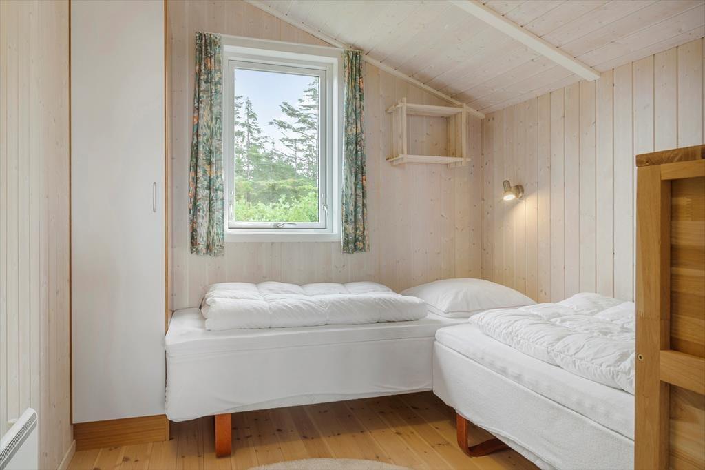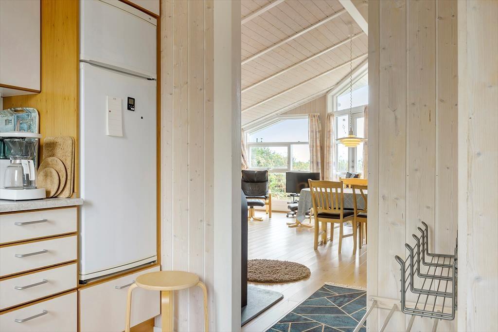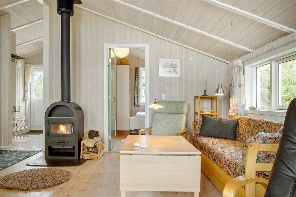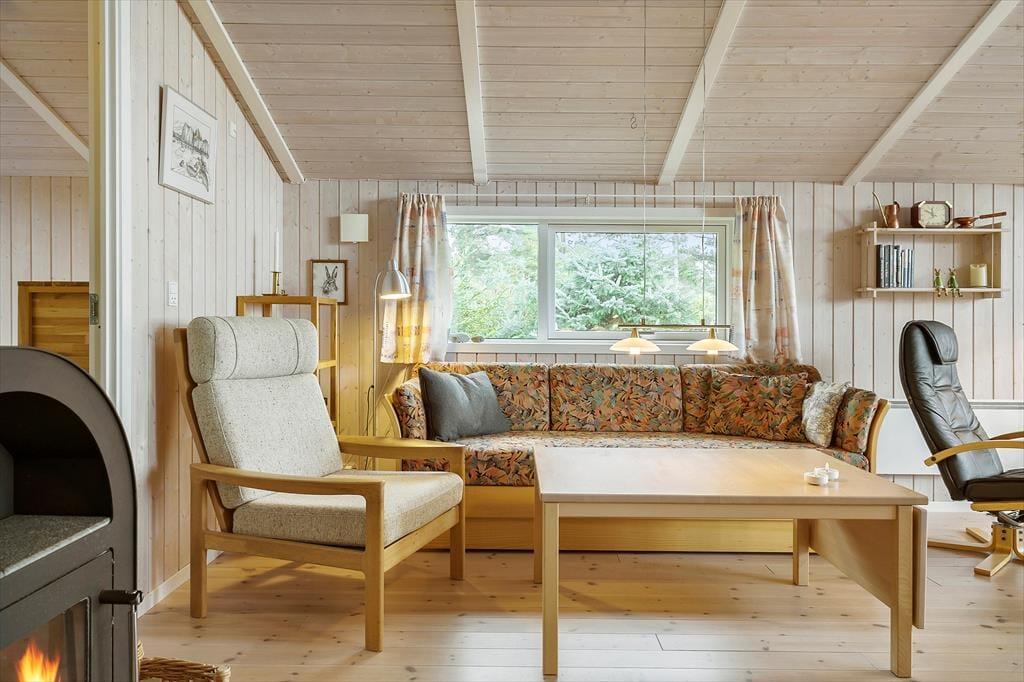 Det flotte landskab kan ligefrem nydes, når I hygger jer inden døre. Husets store vinduer åbenbarer den naturskønne udsigt – ja, der er ligefrem kig til fjorden, så I bliver mindet om, hvor tæt I bor på vandet. Kigger vi nærmere på selve huset, er det en lys og velholdt feriebolig fra 2002. Sommerhusets 72 m² er godt udnyttet, så der er plads til seks personer inden døre. De to soveværelser er begge indrettet med dobbeltseng, og derudover er der en komfortabel alkove i stuen. Stuen er også udstyret med brændeovn, tv, spisebord og flere gode siddemøbler, og der er åben forbindelse ind til køkkenet. Sidst, men ikke mindst, byder planløsningen på et dejligt badeværelse med gulvvarme og sauna.