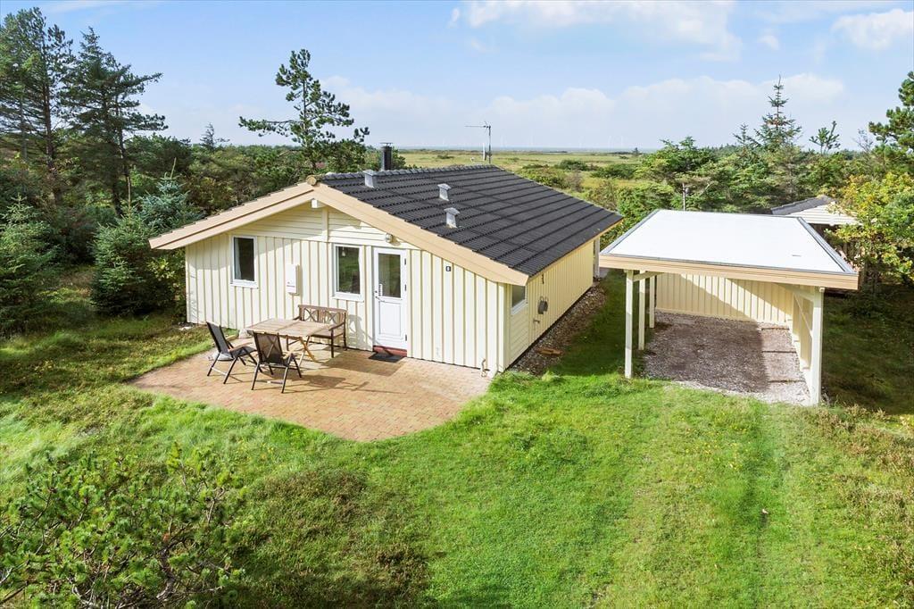 Er vejret mere til solbeskinnet afslapning frem for saunature og brændeovnshygge, kan I flytte driverlivet ud under åben himmel. Her er der to terrasser at vælge imellem, så I kan sætte jer dér, hvor solforholdene er bedst. På sommerhusets dejlige grund står der også en carport, og ellers er grunden holdt på naturlig vis med varieret beplantning, der passer godt ind i omgivelserne.