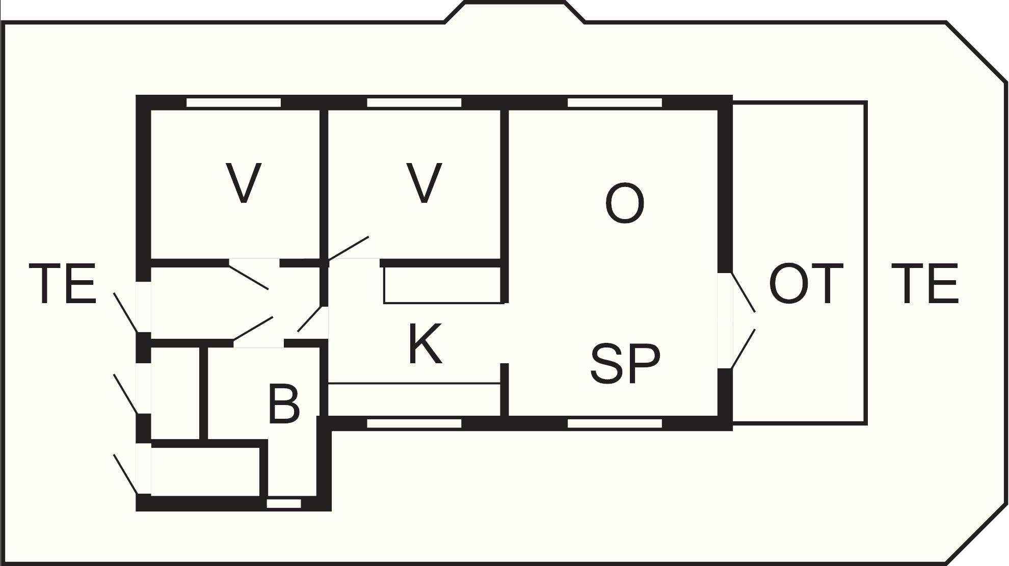 2 Soveværelser: (1DS)+(1DS+2K), barneseng