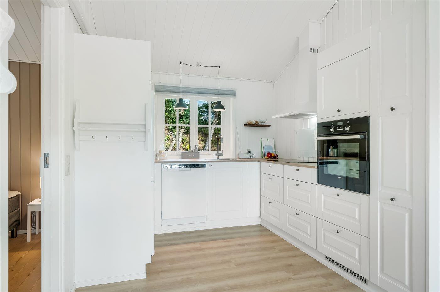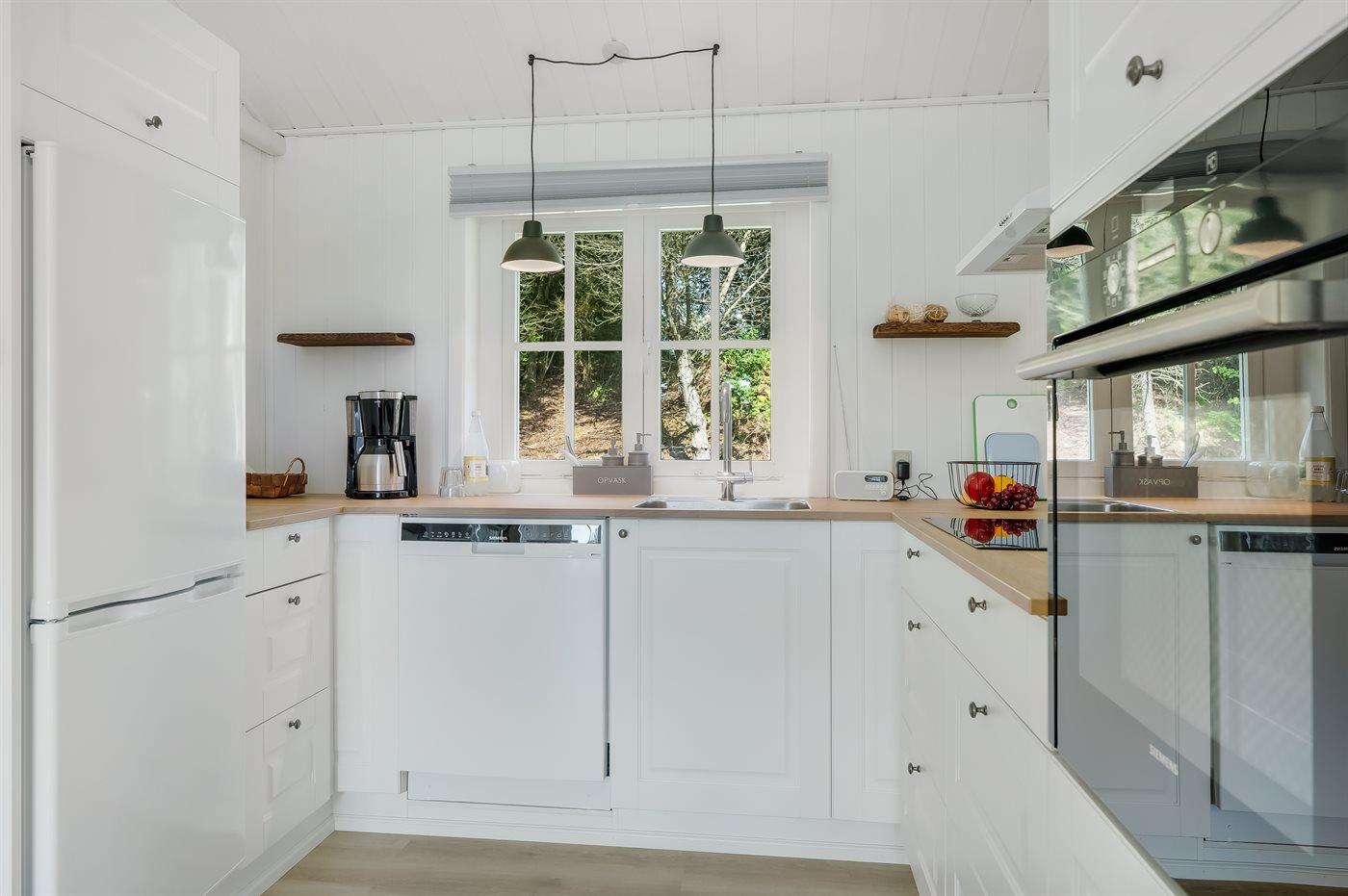 Køkkenet er udstyret med 1 køleskab. Der er 4 induktionskogeplader, varmluftovn, mikrobølgeovn samt opvaskemaskine.