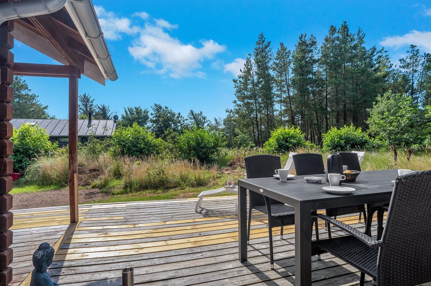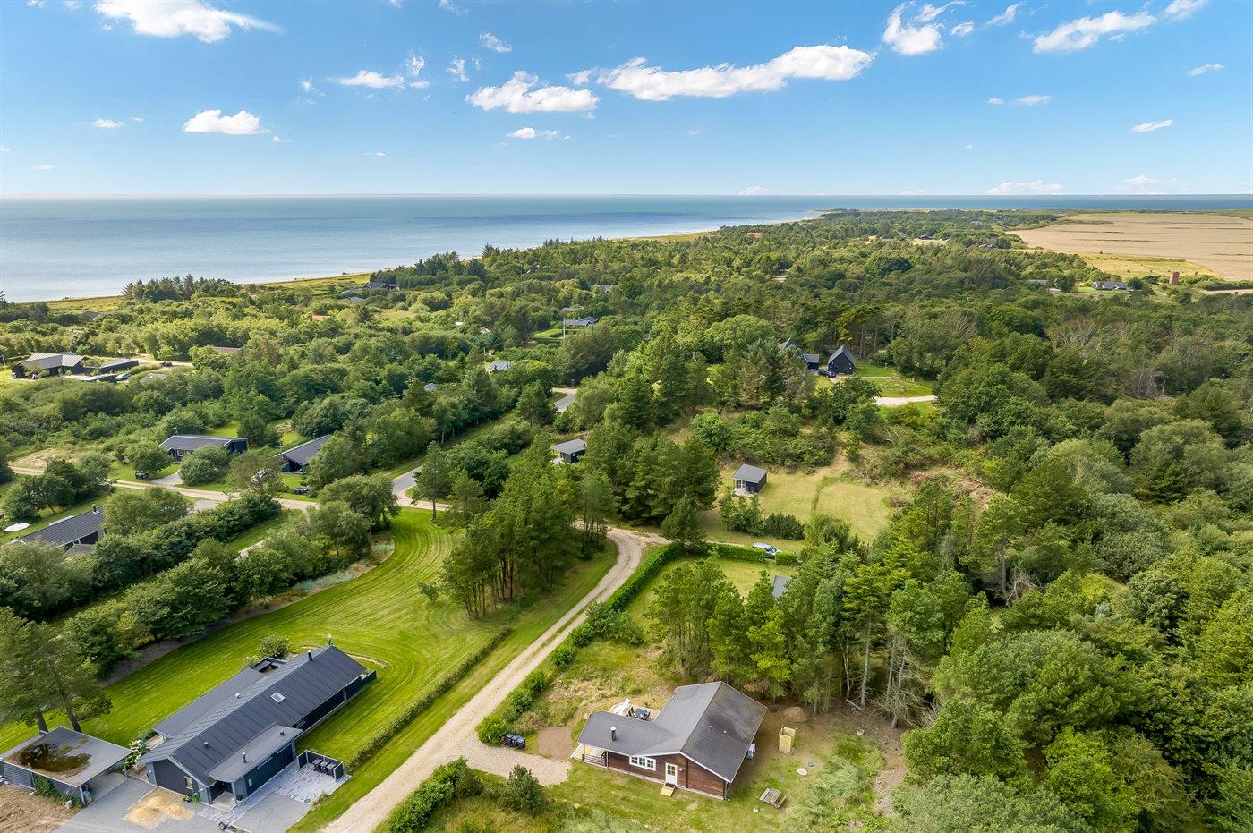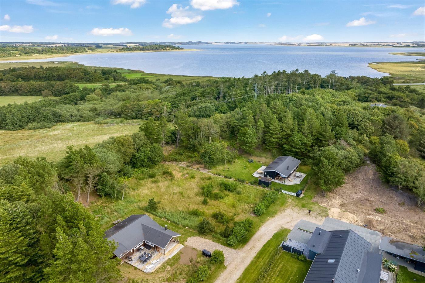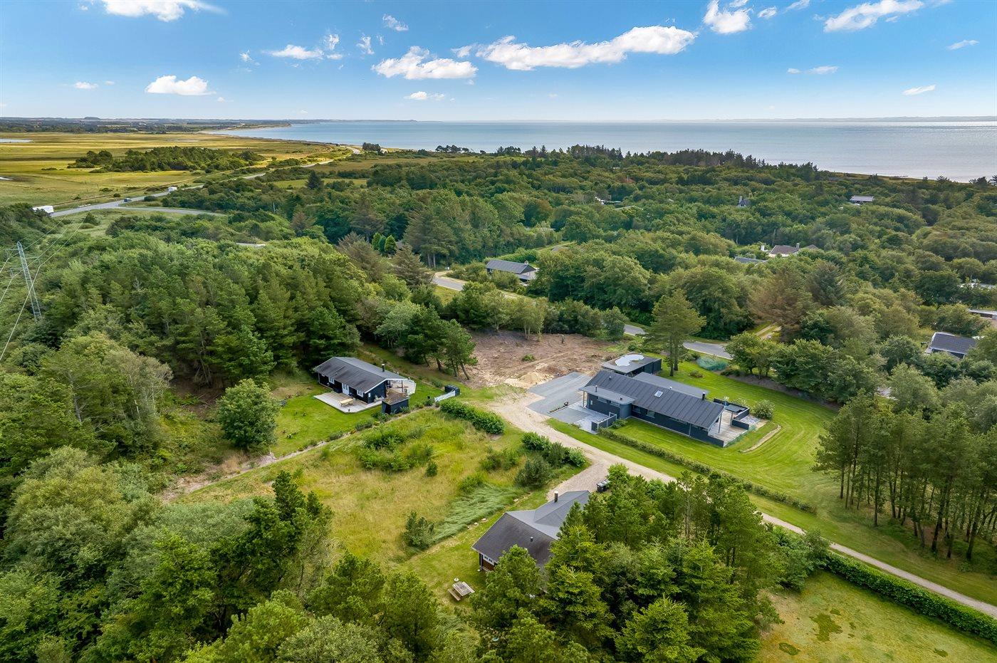 Ferieboligen er beliggende på en 1203 m² stor naturgrund. Der er 8000 m til havet. Der er 350 m til fjorden. Nærmeste forretning er beliggende i en afstand af 9000 m. Til ferieboligen hører åbent terrasseareal. Desuden er der overdækket terrasse. Udendørs bruser. Parkering ved ferieboligen.
