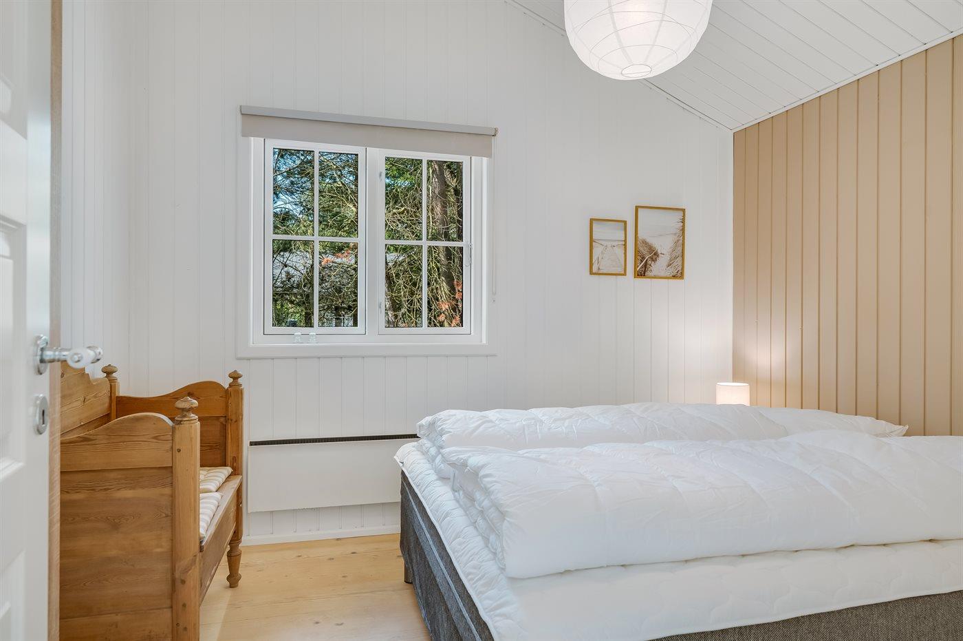 Der er i alt 3 soveværelser. Sovepladserne fordeler sig på: 4 sovepladser i dobbeltsenge. 1 soveplads i enkeltseng. Derudover er der 1 stk. barneseng.
