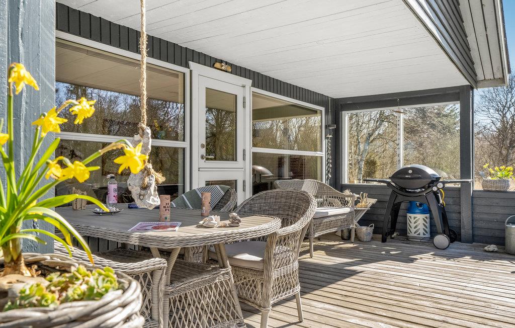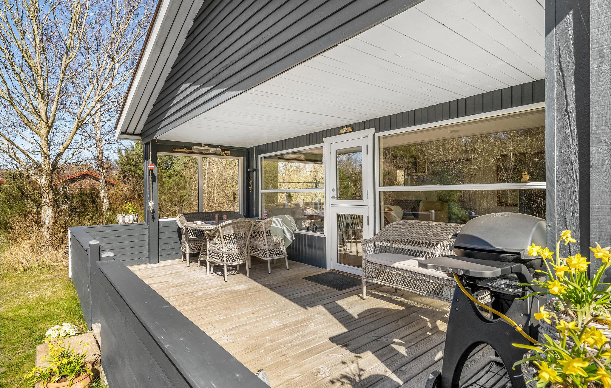Velkommen til dette feriehus på en stor grund med god plads til leg og boldspil. Huset har også en stor terrasse, hvor I kan sidde og sole jer og holde hyggelige grillaftener.