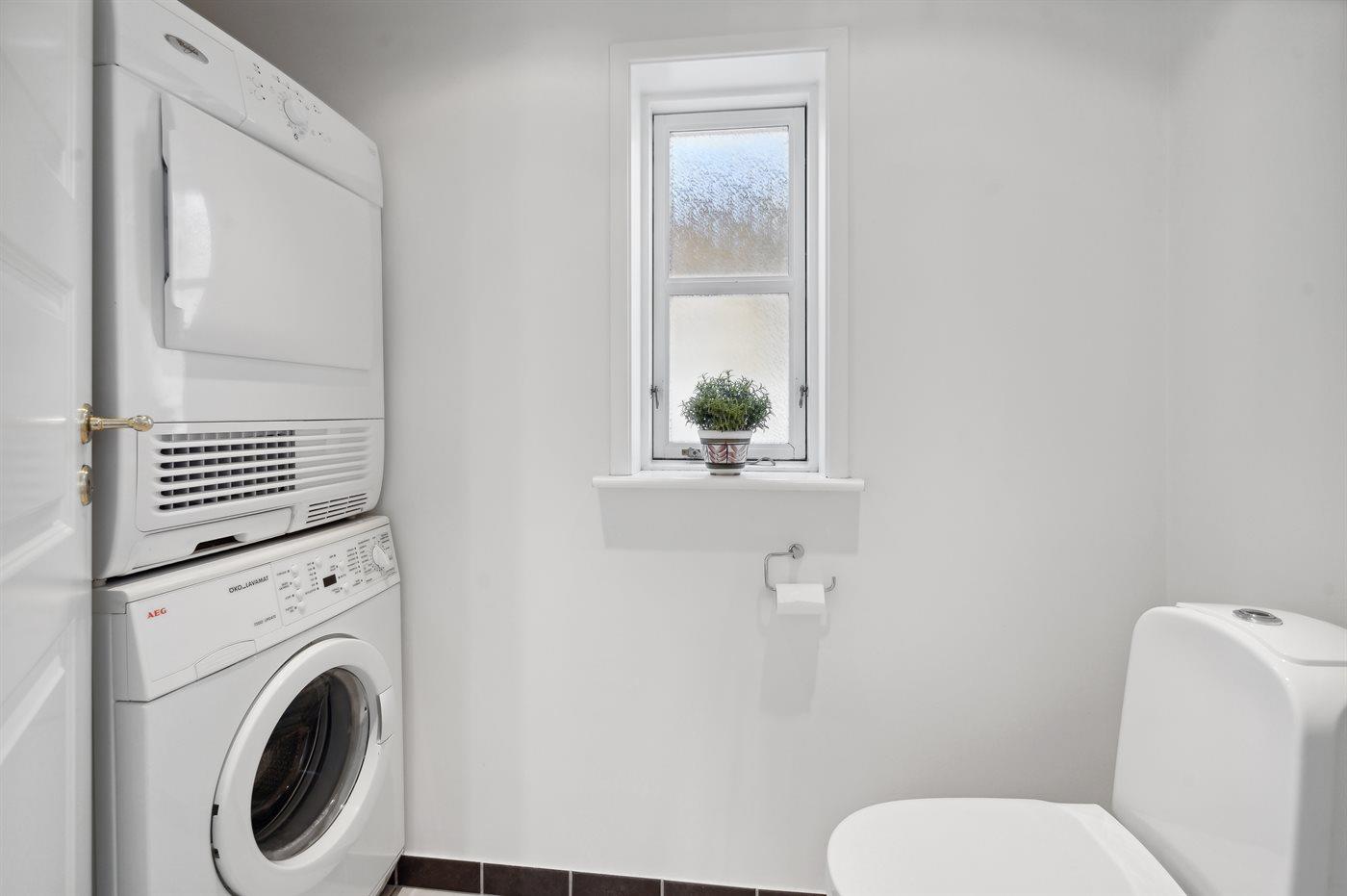 Der er 1 badeværelse med bruseniche og 2 toiletter, heraf 1 gæstetoilet. Der er gulvvarme på 1 badeværelse.