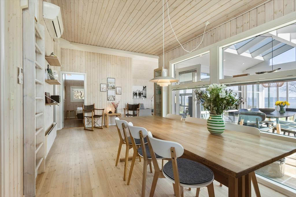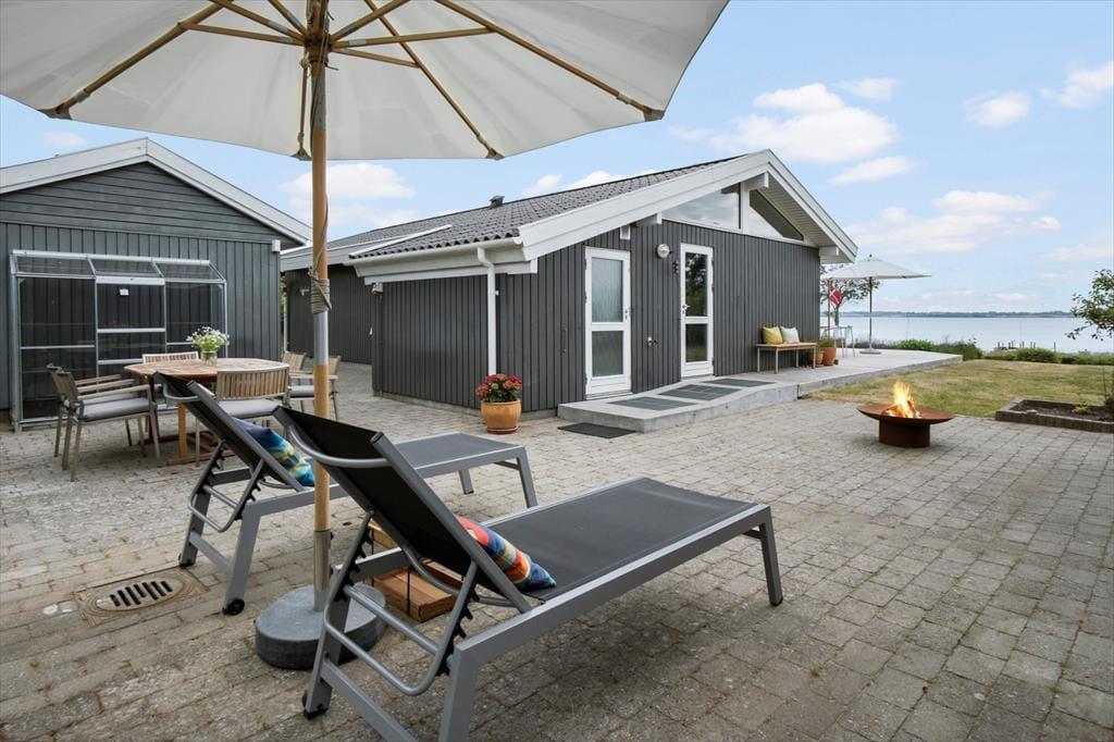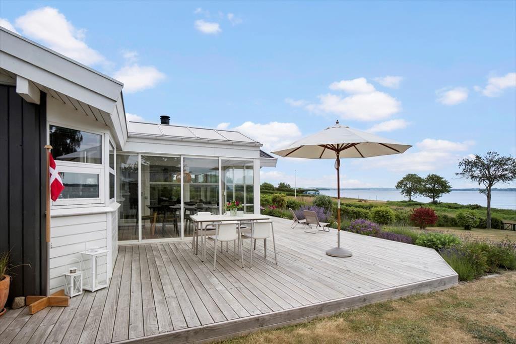På det skønne Helnæs og i første række ligger dette dejlige sommerhus fra 1997. Huset blev i 2007 renoveret og fik tilbygget en meget flot udestue med en fantastisk udsigt til havet. Selve huset indeholder 3 rigtig gode værelser. Det ene med 2 enkeltsenge og de to andre med dobbeltsenge. Husets køkken ligger i åben forbindelse med spisestuen og herfra er der direkte adgang til stuen. Fra både køkken, spisestue og stue har man denne ualmindelig flotte udsigt som ligeledes kan nydes fra husets store terrasse. Huset indeholder desuden et nyrenoveret badeværelse med bruser og gulvvarme. For enden af grunden, er der direkte adgang til stranden hvor man bla finder fælles badebro. Er du til udsigt, ro og fred, så er dette hus lige noget for dig. Velkommen til Helnæs.