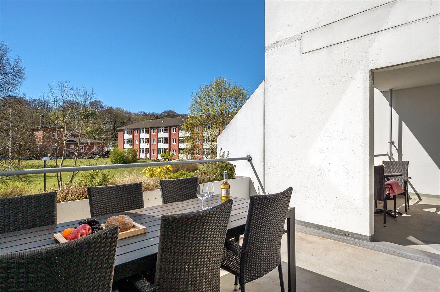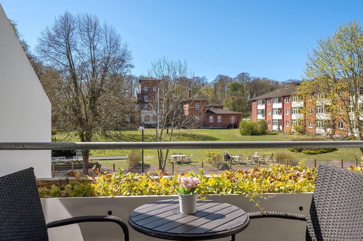 Charmerende ferielejlighed i Helsingør med havudsigt og adgang til have, altaner og moderne faciliteter.