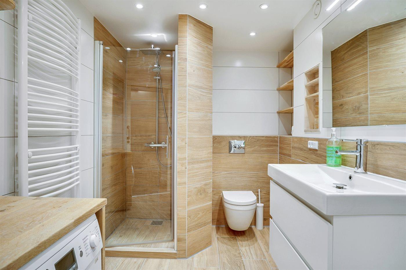 Der er 2 badeværelser med bruseniche og 2 toiletter. Der er gulvvarme på 2 badeværelser.. Badekar.