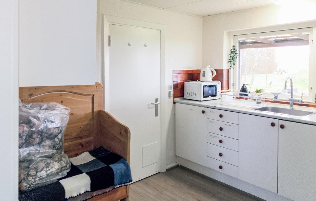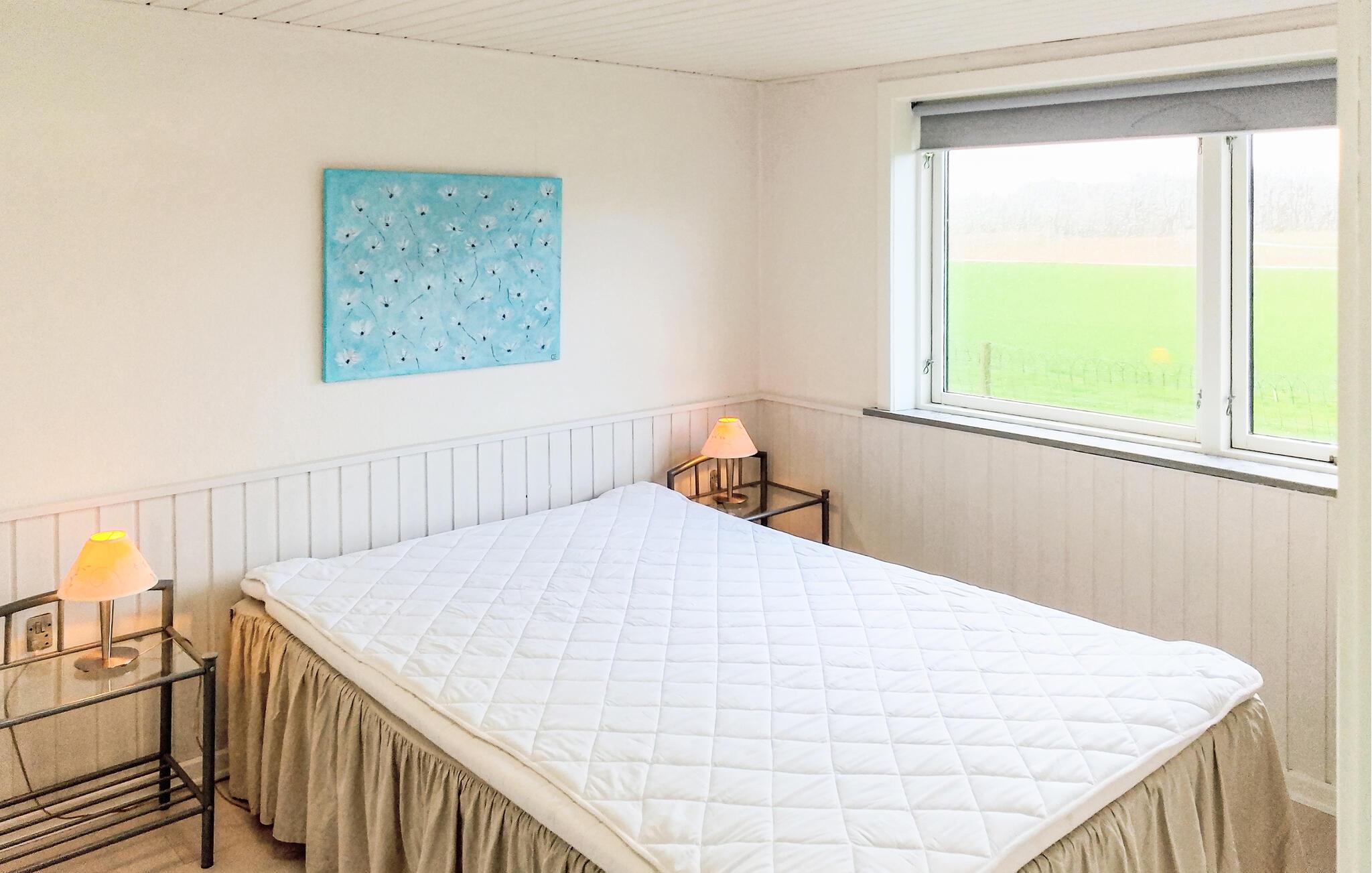 Jeres feriehus tilbyder rolige omgivelser omgivet af natur og er ideelt for gæster, der sætter pris på afslapning, frisk luft og charmen ved det landlige Danmark. Træd ind i opholdsstuen og mærk den åbne og indbydende atmosfære. Vinduerne lukker masser af naturligt lys ind og tilbyder udsigt over de grønne omgivelser. Værelserne er funktionelt indrettede og giver plads til fælles måltider, spilleaftener eller afslapning med en bog. Tilbered jeres måltider i køkkenet, mens I kigger ud af vinduet på markerne.