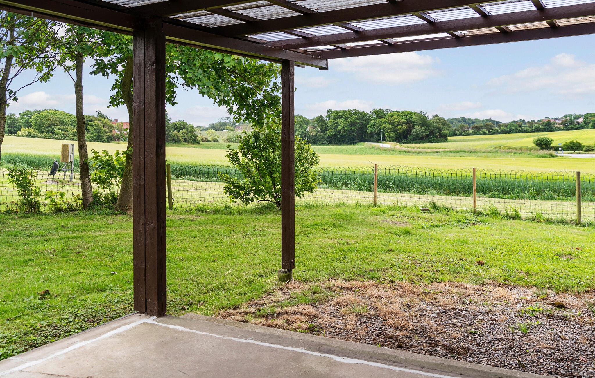 Træd ud på den overdækkede terrasse og nyd udsigten over det store landskab. Læn jer tilbage og start dagen med en kop kaffe eller afslut den med en stille aften udendørs. Haven omkring huset giver plads til motion eller blot afslapning i naturen.