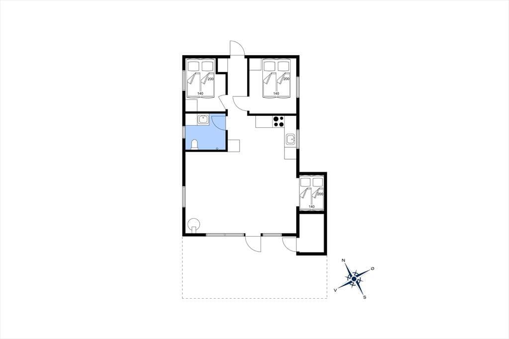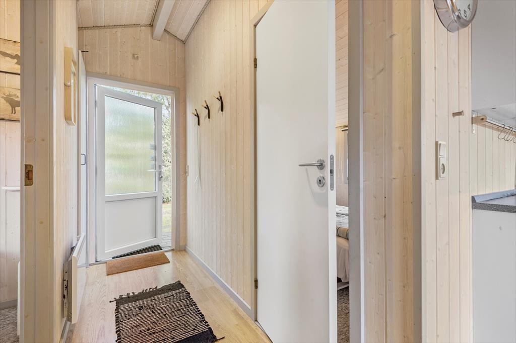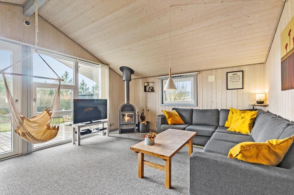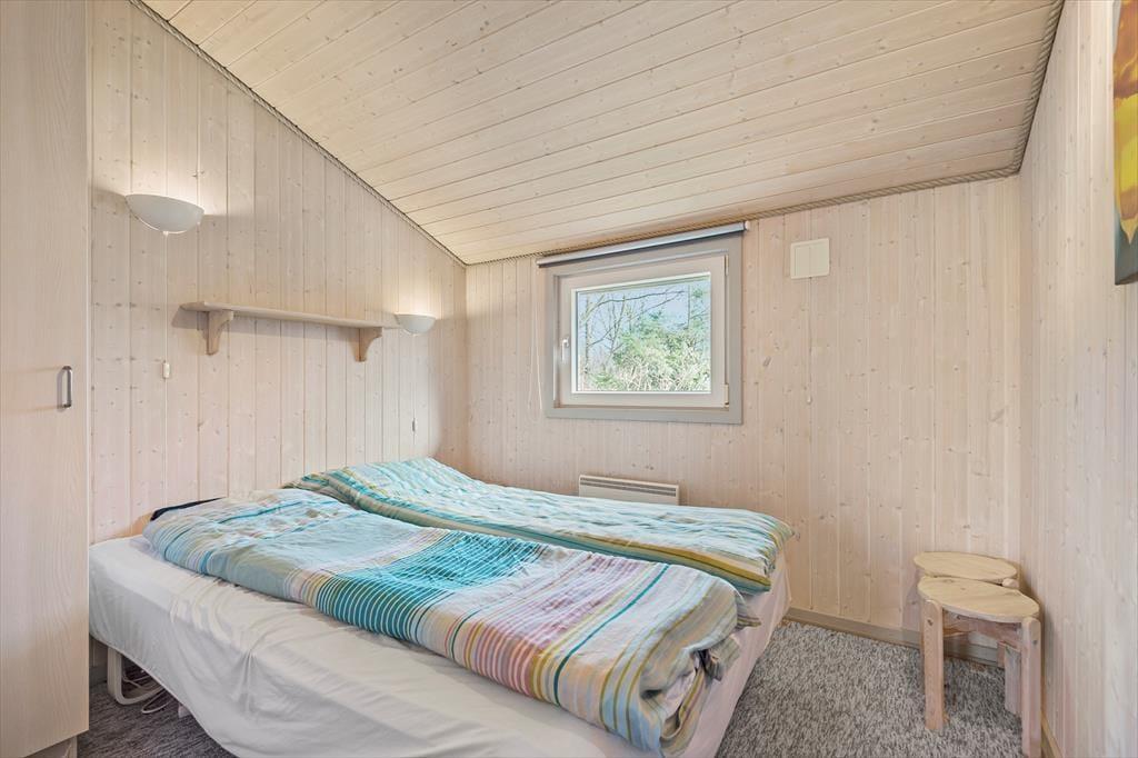 Sommerhusets 61 m2 er fornuftigt fordelt på to soveværelser, et badeværelse og en stue med integreret køkkenafdeling. De to soveværelser er begge udstyret med dobbeltseng, og derudover kan alkoven i stuen bruges som sengeplads, så i alt kan huset rumme seks feriegæster. I løbet af dagen kan alkoven selvfølgelig også fungere som en dejlig hyggekrog, når I vil læse avis eller have en middagslur efter frokosten. Stuens brændeovn er for øvrigt med til at skrue op for den varme og indbydende stemning, og som supplement til TV’et er der både DVD-afspiller og en spillekonsol, så I har noget at hygge jer med, når I slapper af i sofaafdelingen.