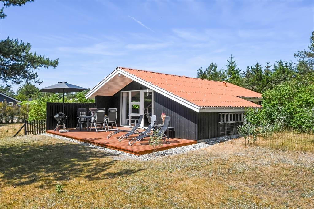 På en lille, lukket vej nær Hemmet Strand står dette hyggelige sommerhus klar til at byde jer velkommen til en dejlig og afslappende ferie.