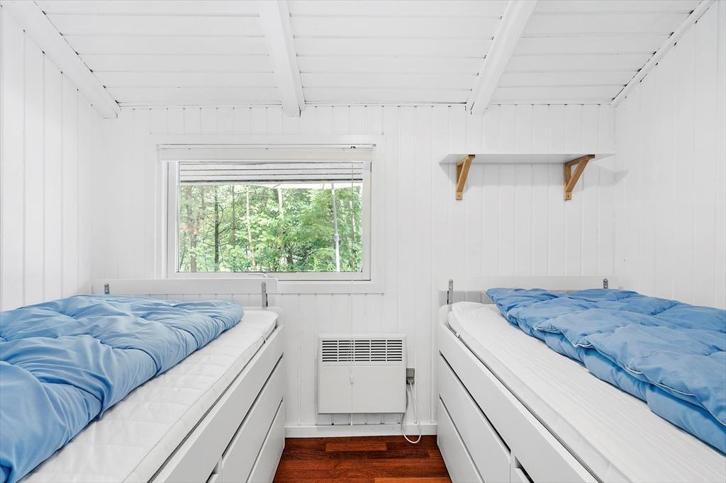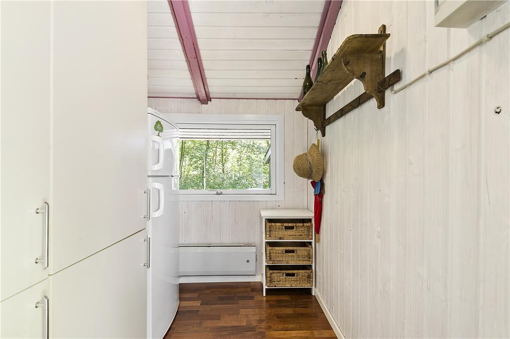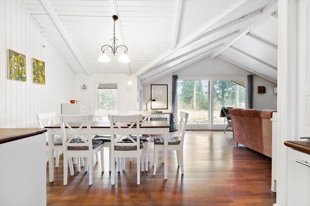 Det klassiske træsommerhus blev senest renoveret i 2010, så det præsenterer sig på indbydende vis med pænt møblement og mange bekvemme detaljer. For eksempel er der både varmepumpe og brændeovn i stuen, og hvis det er køligt udenfor, er det derudover rart, at der er gulvvarme på det moderne indrettede badeværelse. I køkkenet, der ligger i åben forbindelse med stuen, er der både opvaskemaskine og vaskemaskine, så dagens praktiske gøremål kan hurtigt overstås, og i stedet kan I bruge tiden på at slappe af og nyde livet. Har I haft held på fisketuren eller blot købt stort ind, er det desuden rart, at der står et ekstra køleskab med fryser i opbevaringsrummet. Soveværelser hører naturligvis også med til planløsningen, og her er der i alt tre, som tilsammen kan rumme seks feriegæster.
