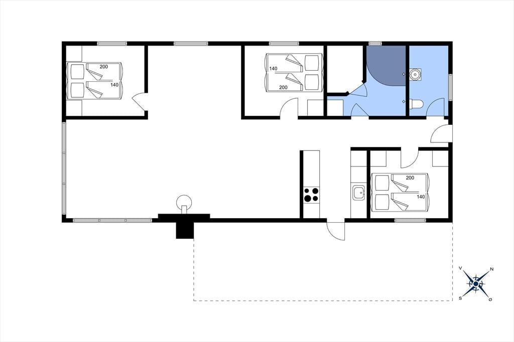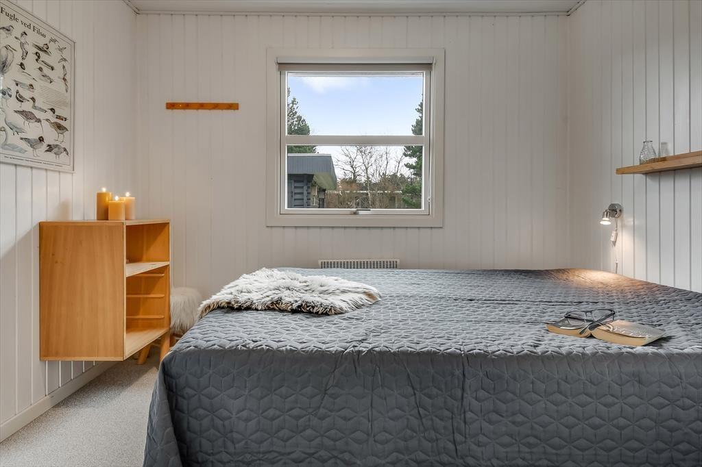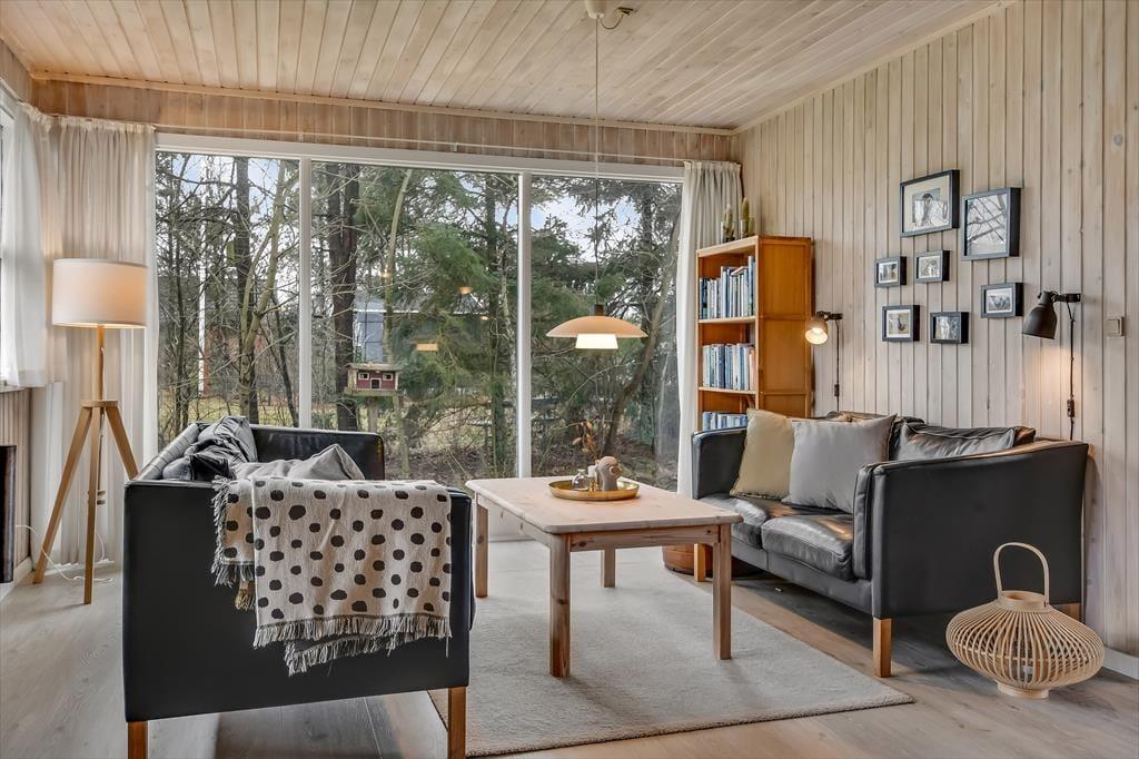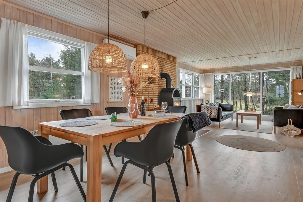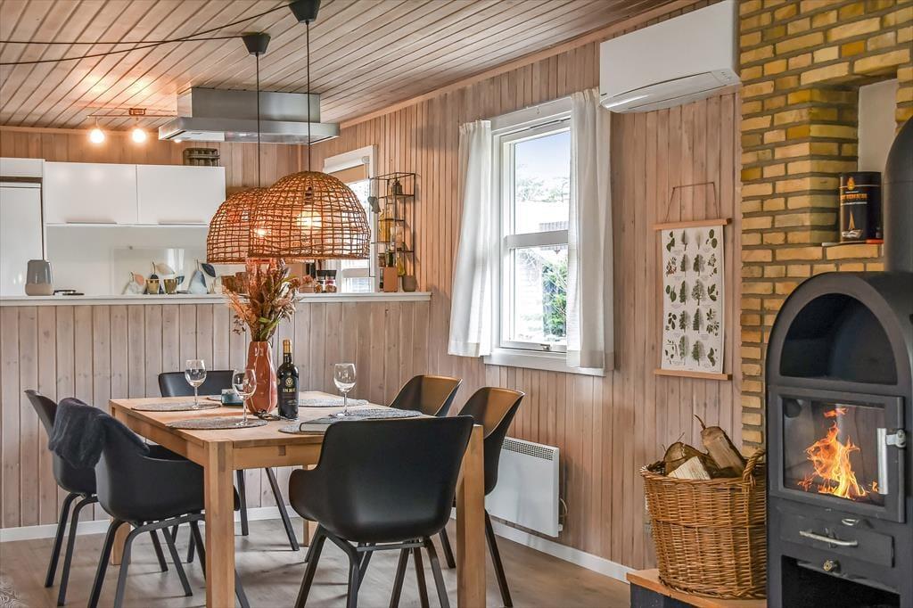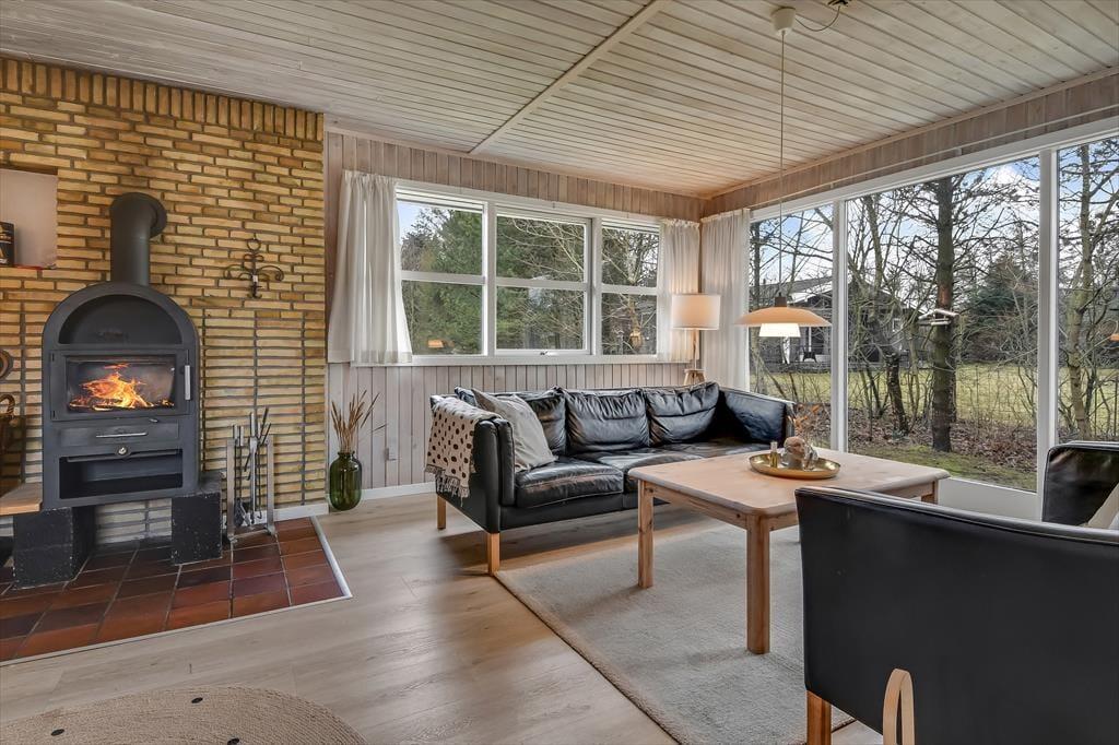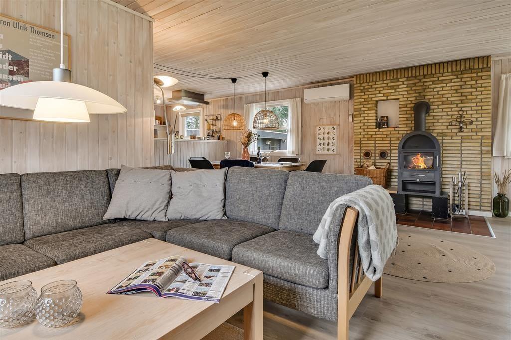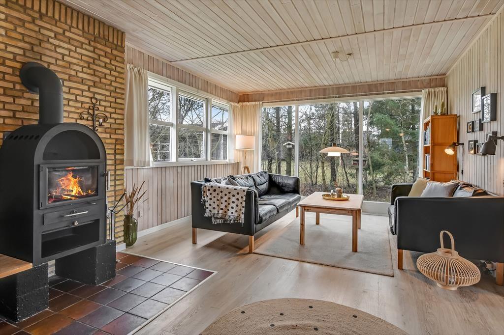 Sommerhuset er blevet grundigt renoveret i 2021, så rummene præsenterer sig på let og indbydende vis med moderne møblement og hyggeskabende indretningsdetaljer. Med tre soveværelser, et badeværelse og separat toilet egner huset sig glimrende til seks personer – og så er der endda spabad og sauna på badeværelset, så I kan få lidt ro og varme efter en tur i skoven eller på vandet. Det føles også rart at samles i husets store opholdsrum, der er indrettet med åbent køkken, spisebord og flere dejlige sofakroge. Her står der en brændeovn klar, så I kan tænde op ved aftentid, når der skal hygges igennem med lækker mad, brætspil og bøger eller måske en god film.