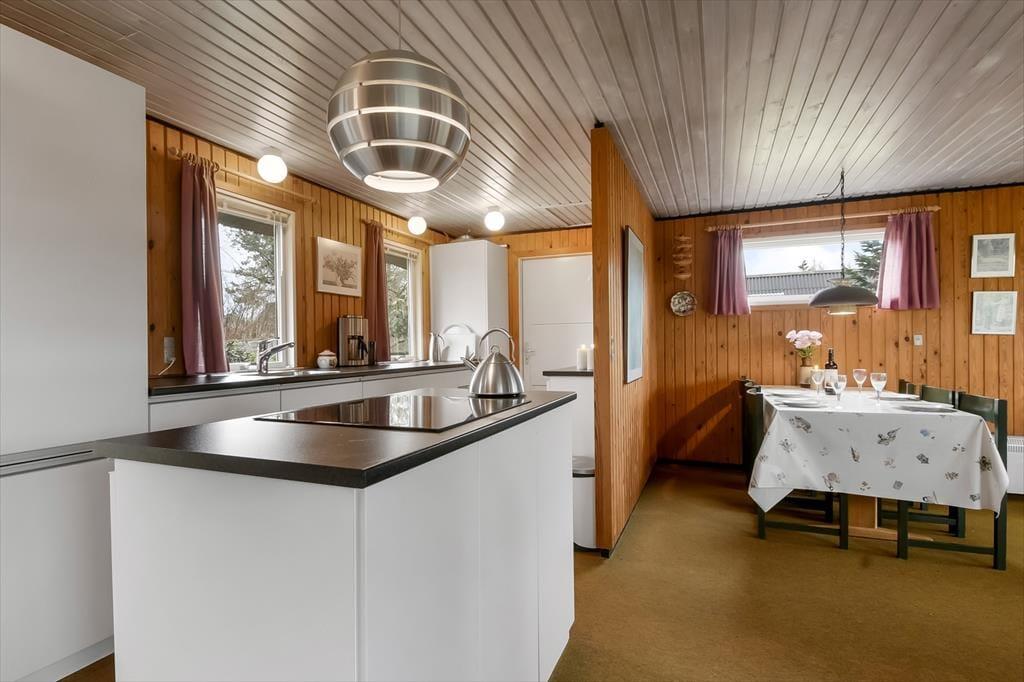 Indenfor bliver du mødt af en varm og indbydende atmosfære, hvor den charmerende indretning skaber en ægte sommerhusstemning. De lyse rum og hyggelige kroge giver en afslappende atmosfære, og det velindrettede opholdsrum gør det nemt at slappe af og føle sig hjemme. Stuen er husets naturlige samlingspunkt, hvor du kan synke ned i sofaen med en god bog eller nyde brændeovnens knitren på kølige dage. Det åbne køkken gør det nemt at tilberede lækre måltider, mens samtalen flyder frit mellem madlavning og sofahygge. Når dagen går på hæld, kan du trække dig tilbage til de hyggelige soveværelser, hvor du kan lade op til endnu en dag fyldt med ferieglæder.
