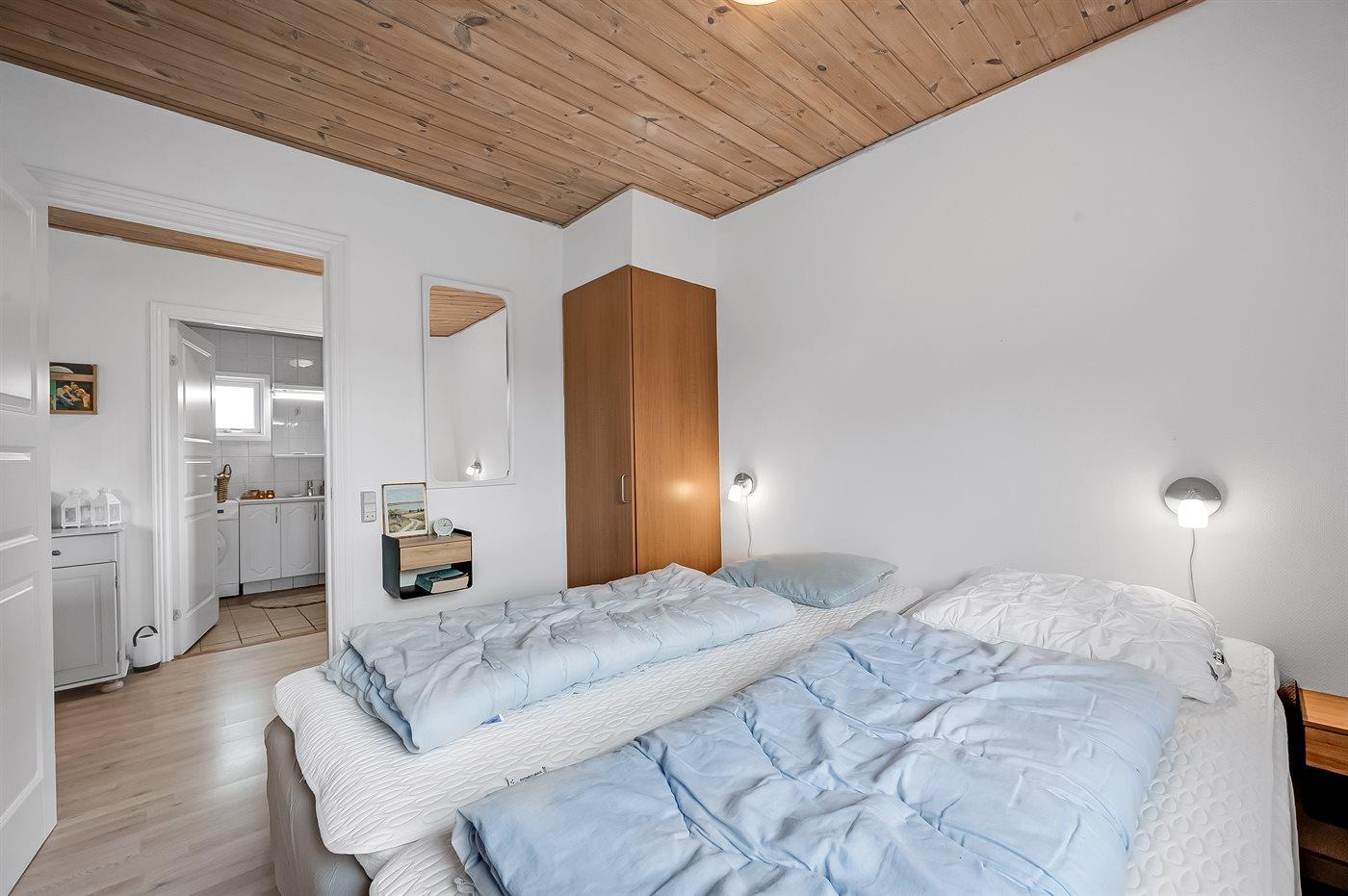 Der er i alt 2 soveværelser. Sovepladserne fordeler sig på: 2 sovepladser i dobbeltseng. 2 sovepladser i køjeseng. Derudover er der 1 stk. barneseng.
