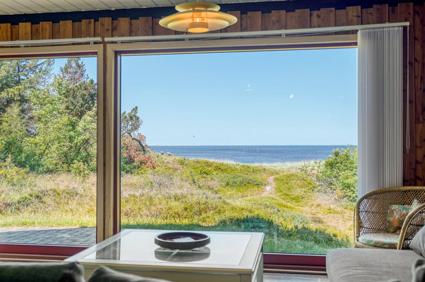 Med panoramaudsigt over Ringkøbing Fjord ligger dette meget hyggelige, ældre sommerhus med stråtag - på en stor kuperet naturgrund. Grunden strækker sig helt ud til fjorden, og derfor er huset bl.a. meget velegnet til windsurfere. Husets indretning er funktionel med blandet møblement. Der findes flere gode cykelstier i området, bl.a. til Bork Havn og Skaven Strand.