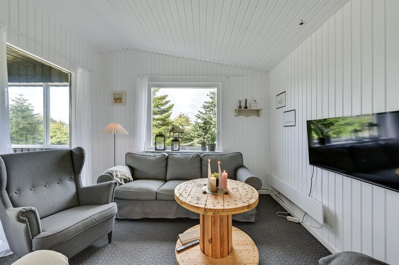 Lyst og hyggeligt indrettet sommerhus i det naturskønne Hemmet Strand. Sommerhuset har en dejlig terrasse med hyggekroge, hvor man altid kan finde læ. Baghaven er indhegnet, så hunden let kan lukkes ud.