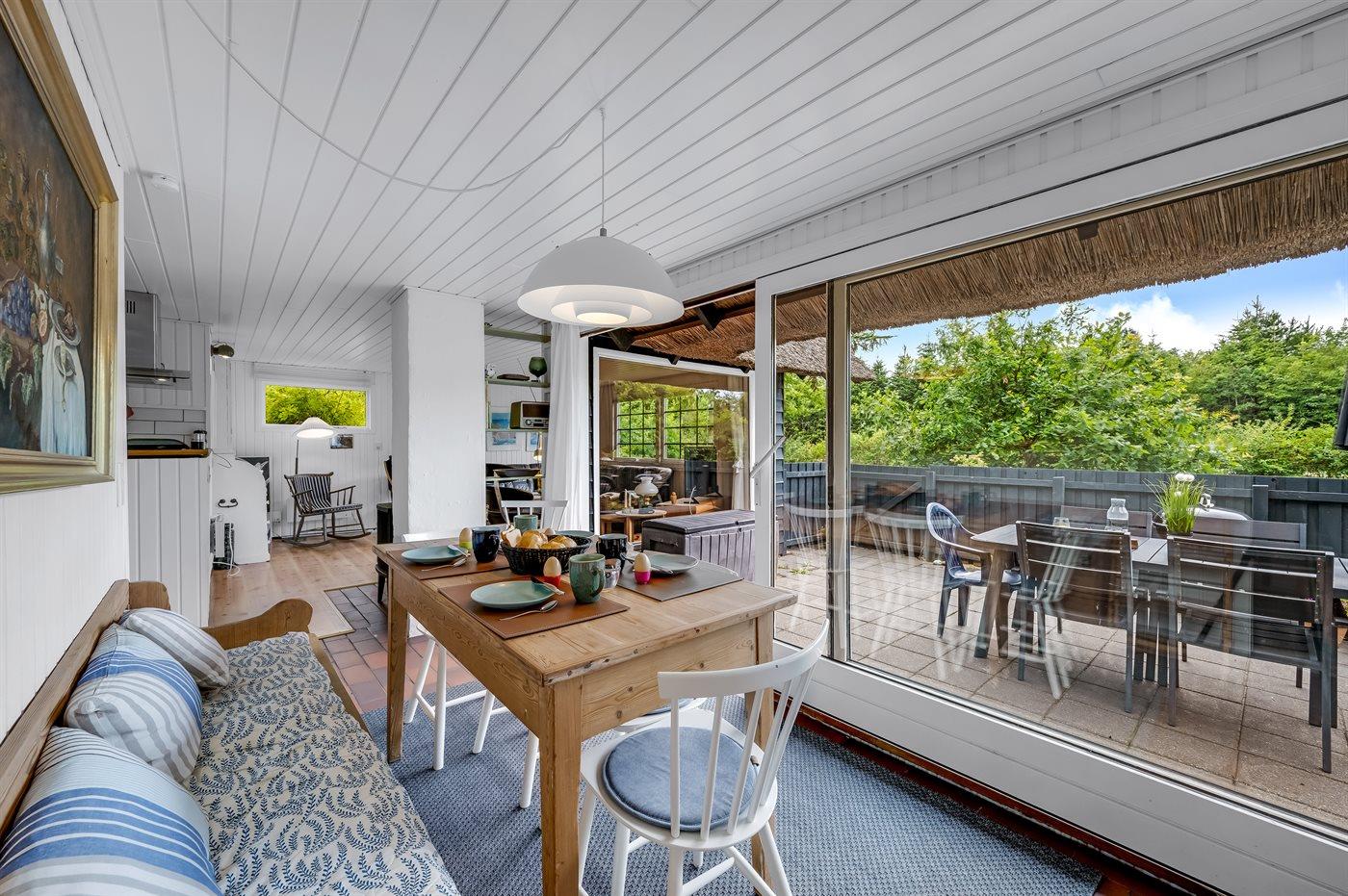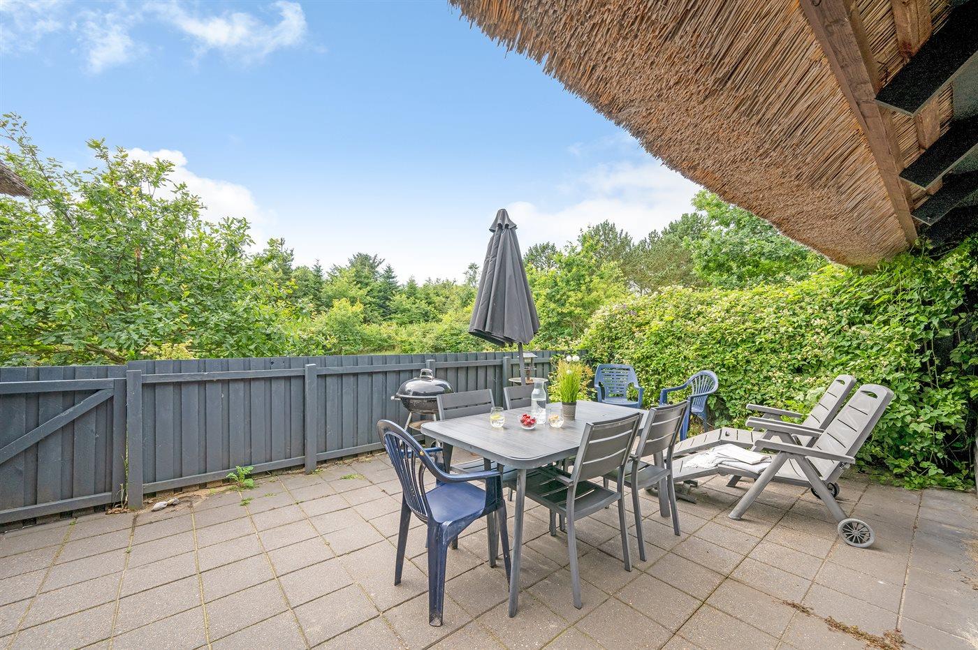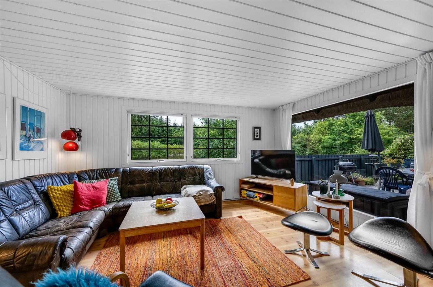 Sommerhuset ligger på en dejlig lukket naturgrund, hvor forhaven er indhegnet og den dejlige terrasse er lukket, hvilket gør dette sommerhus helt ideelt, hvis I tager små børn eller hunde med på ferien.