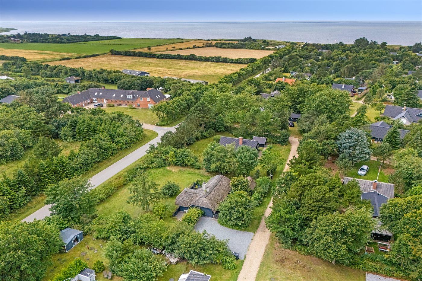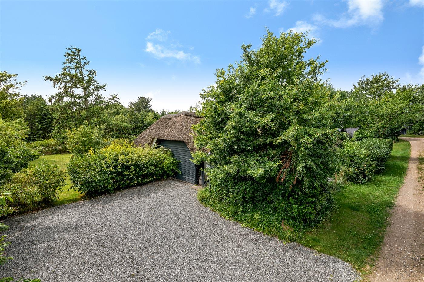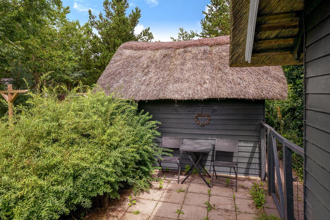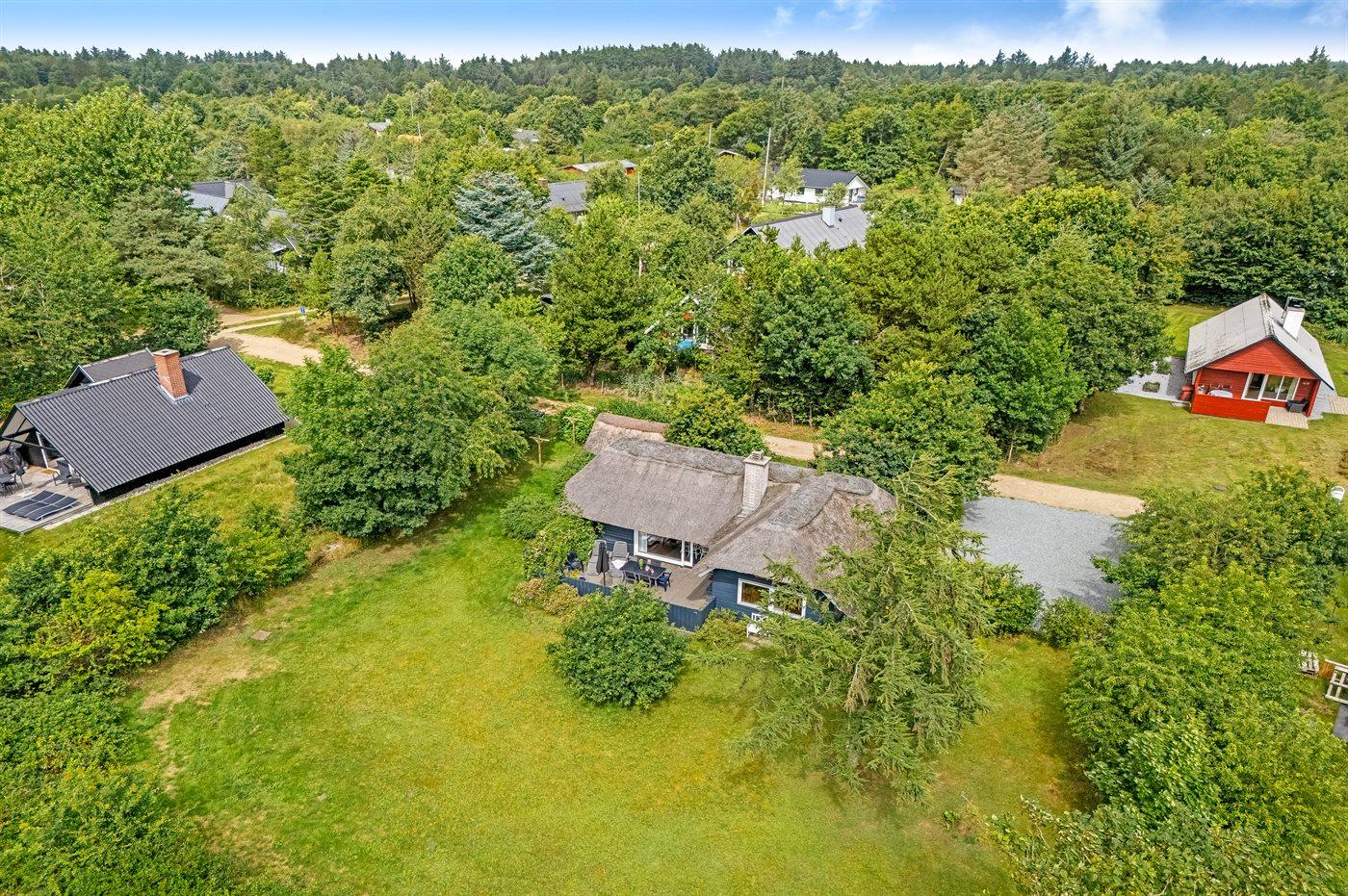 Hyggeligt stråtækt sommerhus på lukket naturgrund tæt ved Ringkøbing Fjord og Hemmet Strand.
