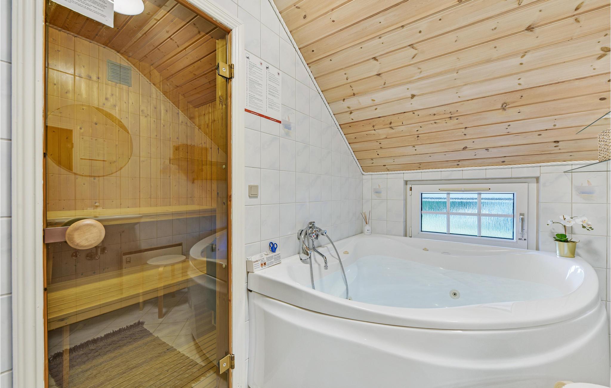 Det lyse hus med trævægge og en stor, hyggelig alkove indbyder til hyggelige dage og aftener, hvor I kan varme jer ved brændeovnen eller i saunaen efter en lang vandretur eller en dag på surfbrættet. Der er også et boblebad, hvor I kan komme helt ned i gear.