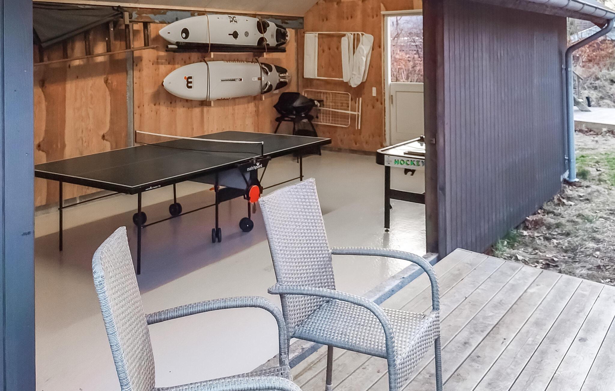 Dette yderst komfortable hus har en fremragende beliggenhed i Hemmet Strand, så her er der lagt op til en herlig familieferie ved havet. Nyd den vidunderlige udsigt over klitlandskabet, fra I står op om morgenen. Nyd atmosfæren i de åbne, hyggelige lokaler, tilbered lækre feriemåltider sammen og dæk op til en middag rundt om det lange spisebord efter et spil bordtennis eller airhockey. Når dagen er til ende kan I sætte jer til rette i sofaen og hygge jer med en god film. Den stille knitren fra flammerne i brændeovnen bidrager med ekstra stemning.