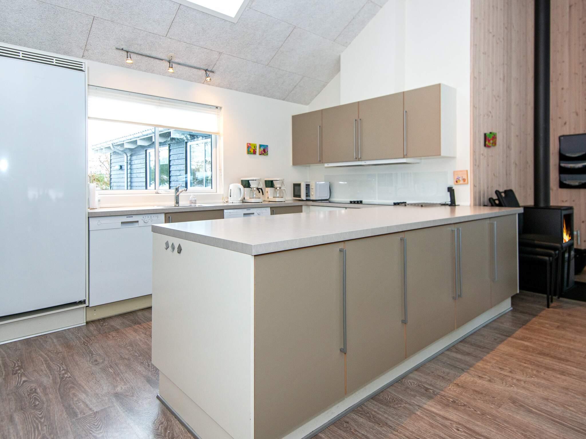 Velindrettet sommerhus i Henne der rummer alt, hvad hjertet kan begære af aktivitets- og udfoldelsesmuligheder. Den store poolafdeling indeholder en stor swimmingpool med vandrutschebane og svømmetræner, sauna, bruseniche og spabad med god plads. Efter en god og oplevelsesrig dag er det skønt at lade sig glide ned i husets store spabad eller lade sig varme igennem i husets sauna. På den anden side af det centralt placerede spise-/opholdsrum kommer I ind i aktivitetsrummet, hvor I kan tage et spil dart eller billard ved poolbordet. Her kan I også udfordre hinanden i bordtennis eller fodboldspil. Selv stereoanlæg, PlayStation og fladskærm er installeret i aktivitetsrummet.