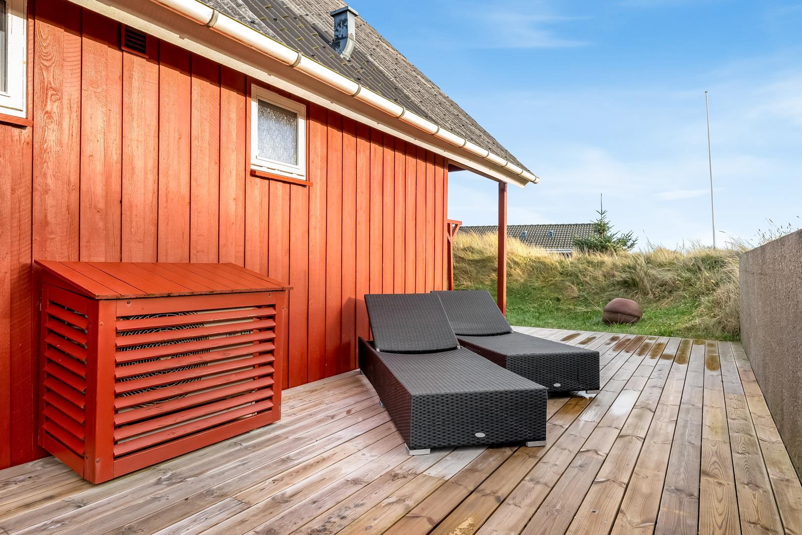 Dejligt feriehus i Henne Strand med havudsigt, sauna og flere terrasser tæt på stranden.