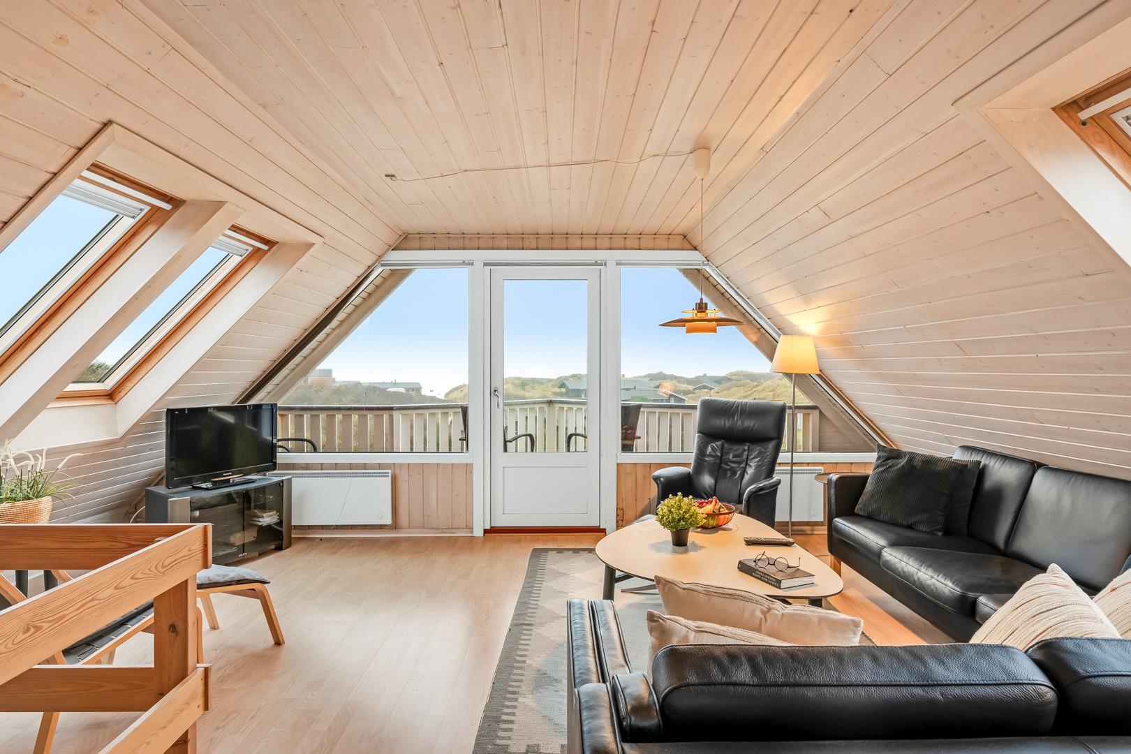 Skønt feriehus i 2 etager med havudsigt beliggende på en pragtfuld klitgrund tæt på stranden. Der er både havudsigt fra stueetagen og 1 salen. Flere dejlige terrasser hvorfra den flotte udsigt kan nydes. Pænt badeværelse med sauna. På 1 salen finder man den hyggelige stue hvor den flotte udsigt kan nydes og hvor der er udgang til balkon. Et lækkert hus tæt på vandet.