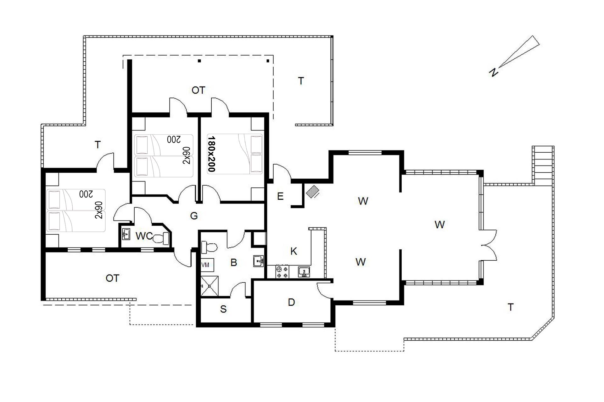 Sengestørrelser: 2 dobbeltsenge med 2 madrasser 90 x 200 cm + 1 dobbeltseng 180 x 200 cm.