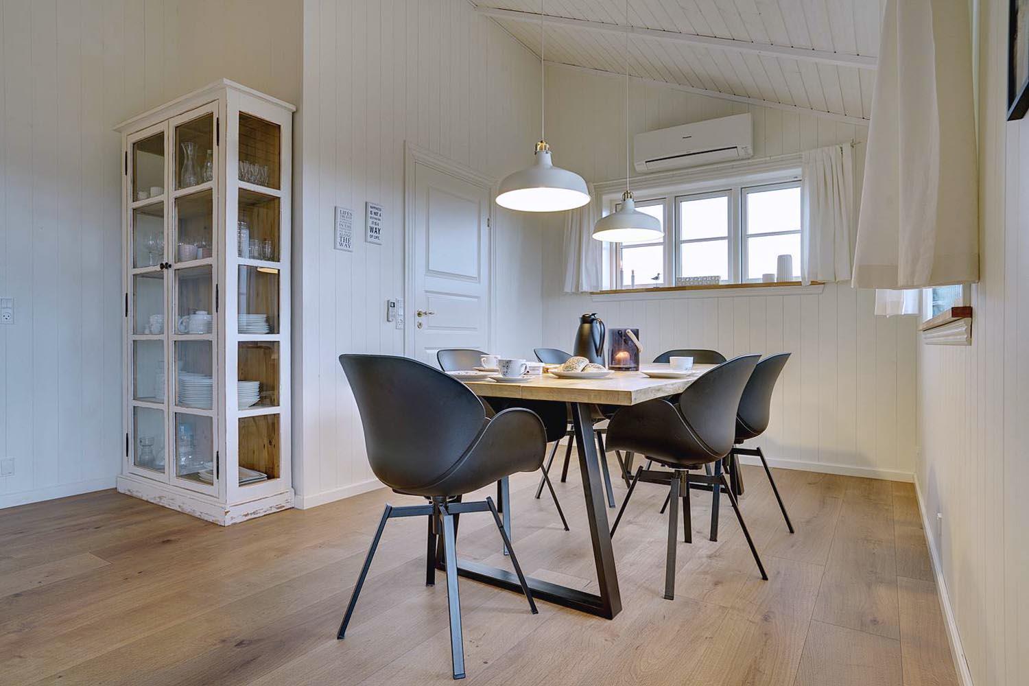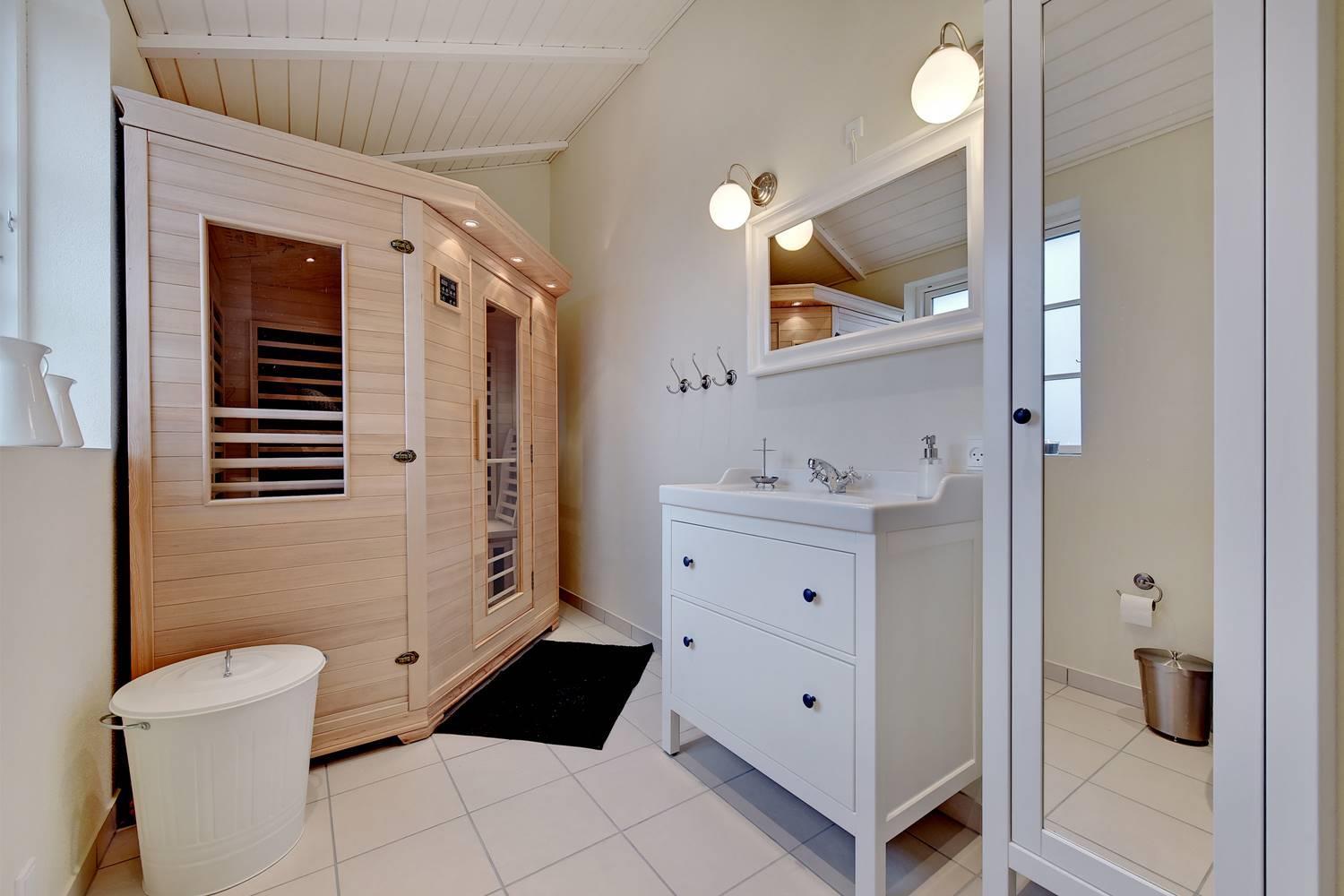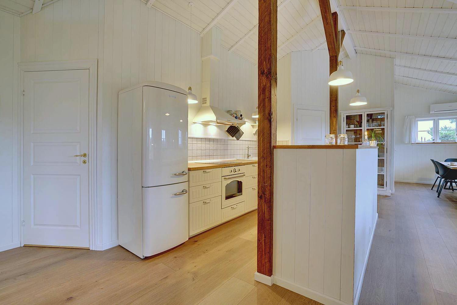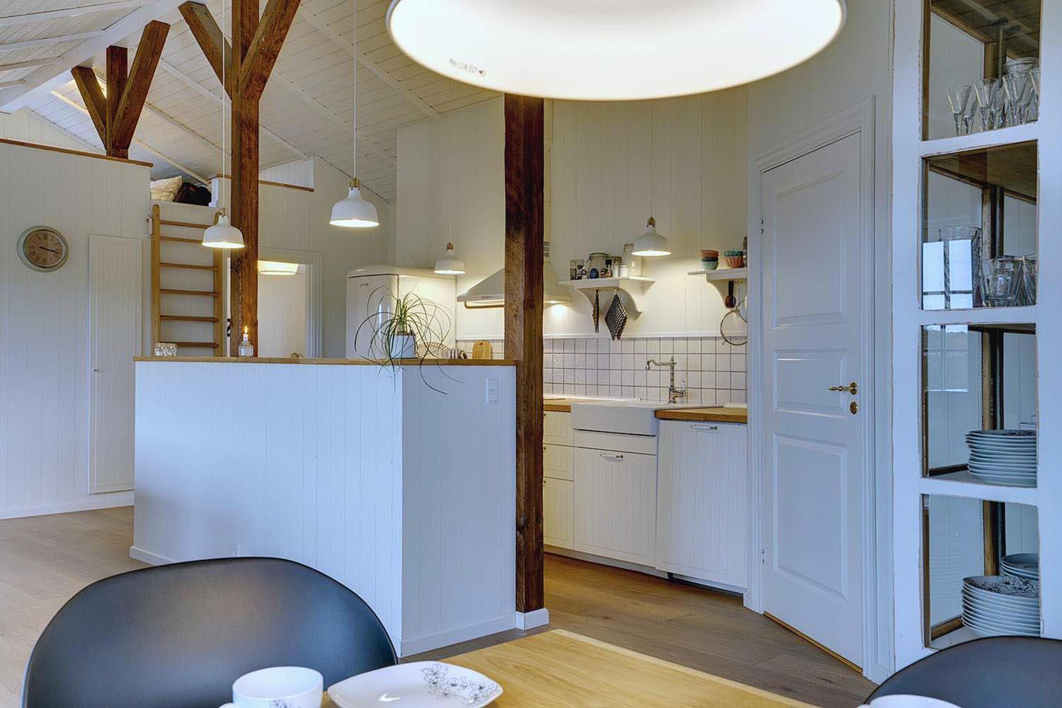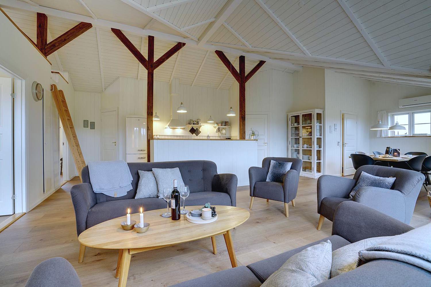 Bjælkehus med græstag, beliggende på åben naturgrund i rolige natur omgivelser. Gode terrasseforhold, delvis indhegnet og flere terrasser med havemøbler. Flisebelagt gangsti omkring hele huset. Indendørs er der højt til loftet og synlige bjælker. Huset er lyst, hvidt og venligt indrettet og gammel stil, kombineret med nutidens trend. Godt indgangsparti med vaskemaskine og tørretumbler. I denne afdeling er der ligeledes et værelse med enkeltsenge. Desuden findes 2 værelser med dobbeltsenge meget hyggeligt indrettet. Landkøkken med opvaskemaskine og separat fryser i åben forbindelse til spiseplads med langbord og stue med siddegruppe, tv og brændeovn. 2 dejlige badeværelser, det ene med spa og den anden med sauna, men begge med gulvvarme. Stor hems med madras, hvor børnene kan hygge sig. Energi rigtig og miljøvenlig varmepumpe. Der er naturligvis WIFI, så I kan holdes opdateret i ferien. Depotrum på 2,5 m2 til opbevaring. Et charmerende hus med en gennemgående og landelig stil.