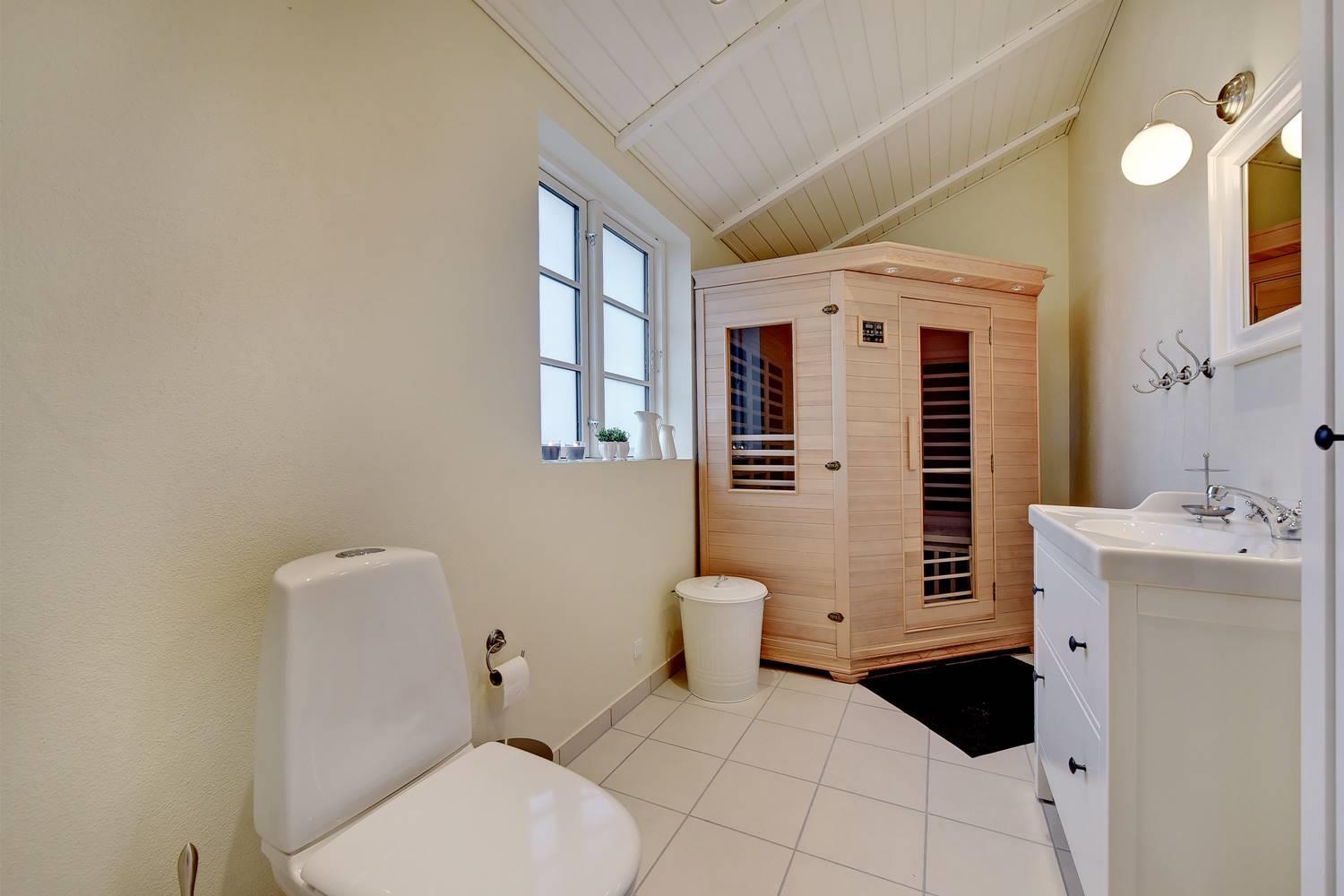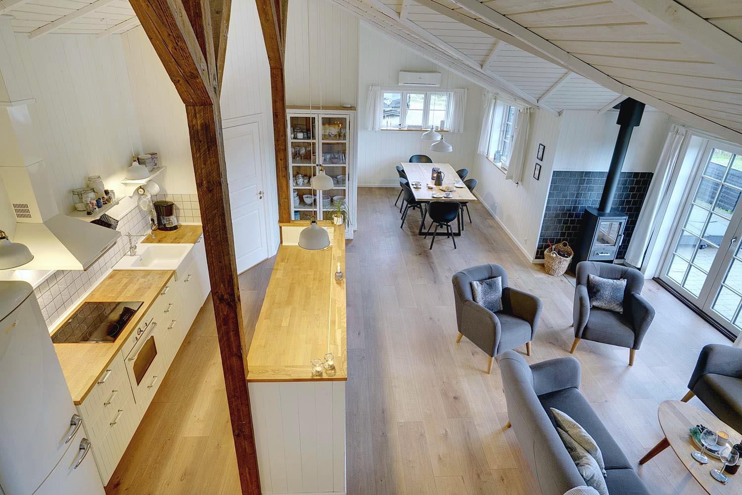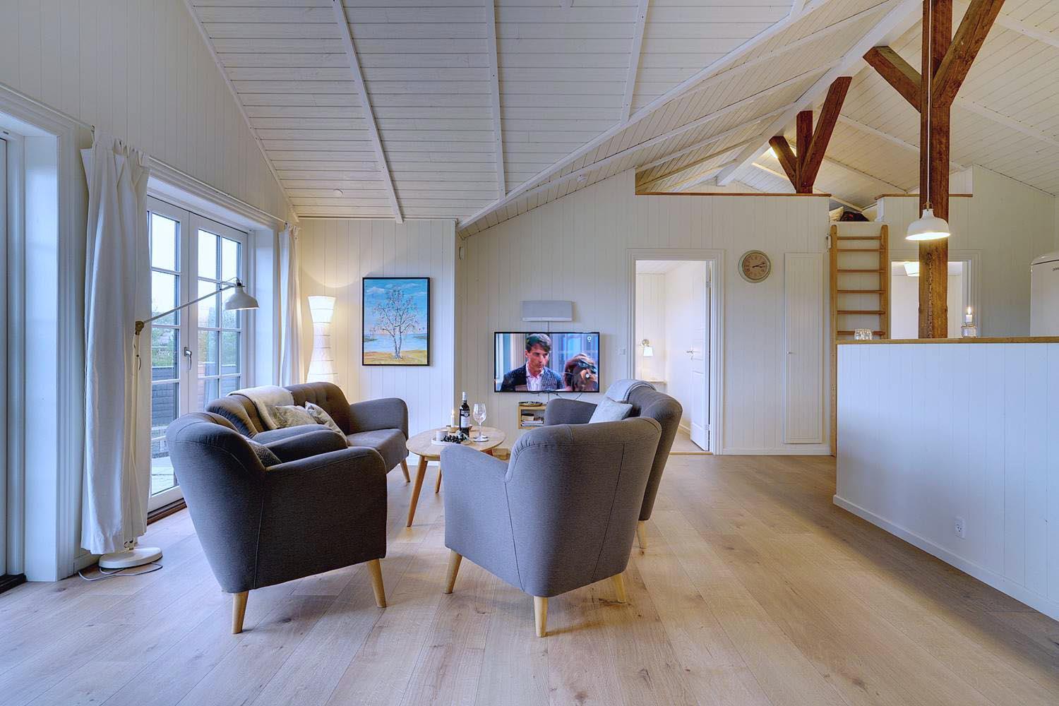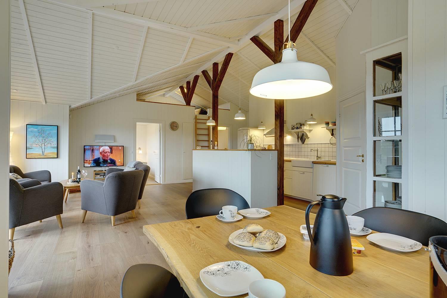 Bjælkehus med græstag, beliggende på åben naturgrund i rolige natur omgivelser. Gode terrasseforhold, delvis indhegnet og flere terrasser med havemøbler. Flisebelagt gangsti omkring hele huset. Indendørs er der højt til loftet og synlige bjælker. Huset er lyst, hvidt og venligt indrettet og gammel stil, kombineret med nutidens trend. Godt indgangsparti med vaskemaskine og tørretumbler. I denne afdeling er der ligeledes et værelse med enkeltsenge. Desuden findes 2 værelser med dobbeltsenge meget hyggeligt indrettet. Landkøkken med opvaskemaskine og separat fryser i åben forbindelse til spiseplads med langbord og stue med siddegruppe, tv og brændeovn. 2 dejlige badeværelser, det ene med spa og den anden med sauna, men begge med gulvvarme. Stor hems med madras, hvor børnene kan hygge sig. Energi rigtig og miljøvenlig varmepumpe. Der er naturligvis WIFI, så I kan holdes opdateret i ferien. Depotrum på 2,5 m2 til opbevaring. Et charmerende hus med en gennemgående og landelig stil.