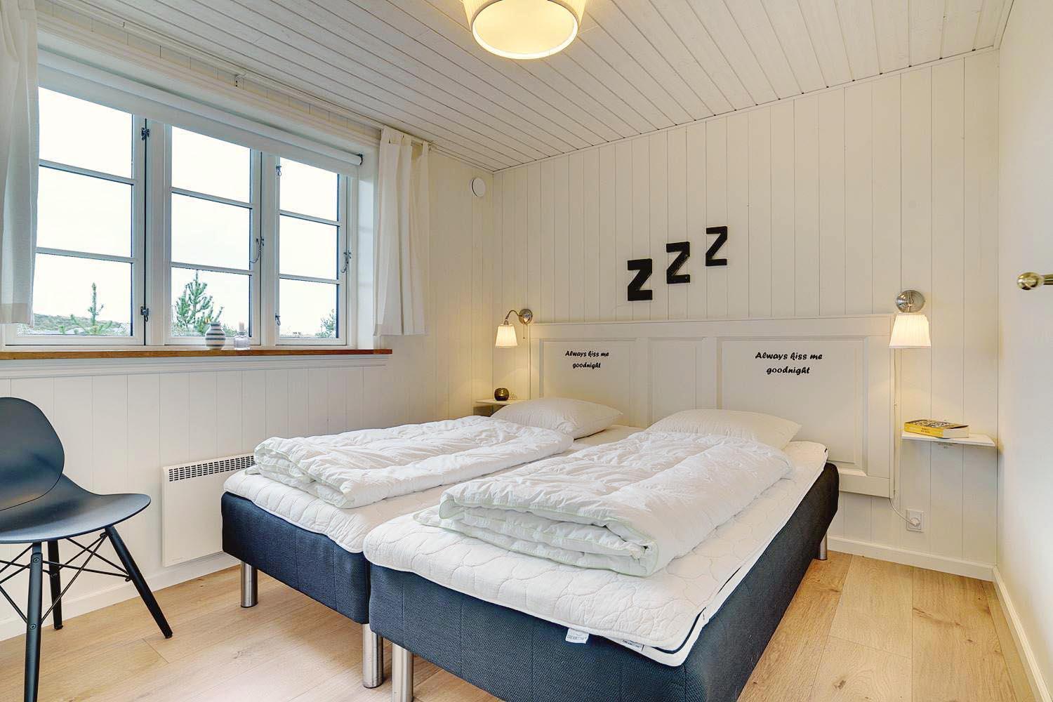 Sengestørrelse: 2 dobbeltsenge med 2 madrasser 90 x 200 cm + 2 enkeltsenge 80 x 200 cm.