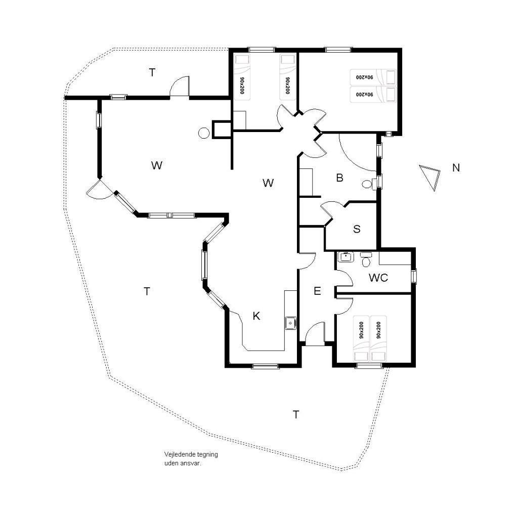 Sengestørrelse: 2 dobbeltsenge med 2 madrasser 90 x 200 cm + 2 enkeltsenge 90 x 200 cm.