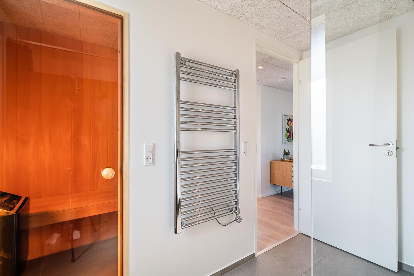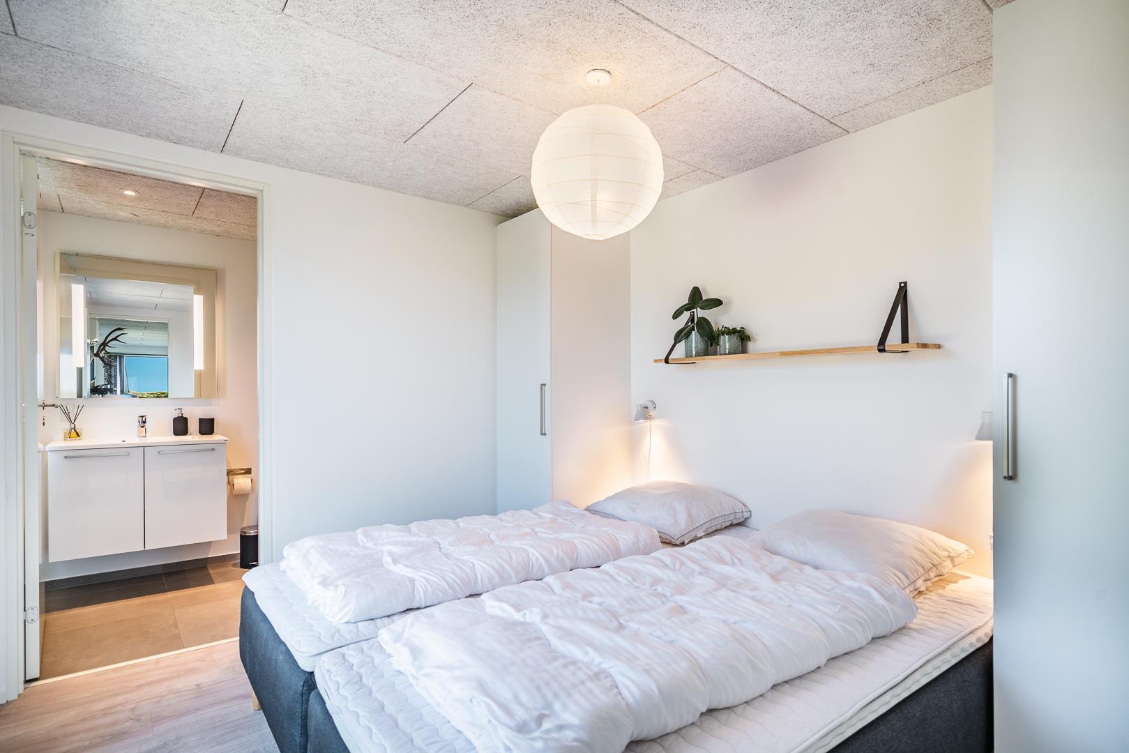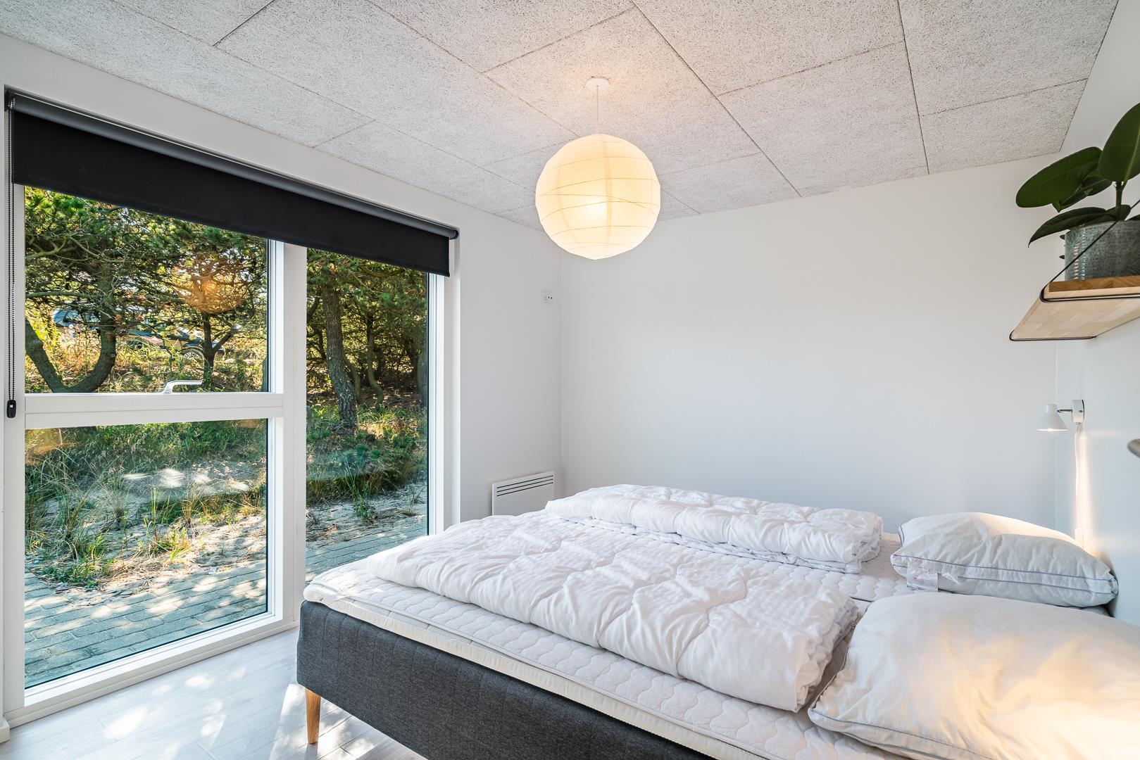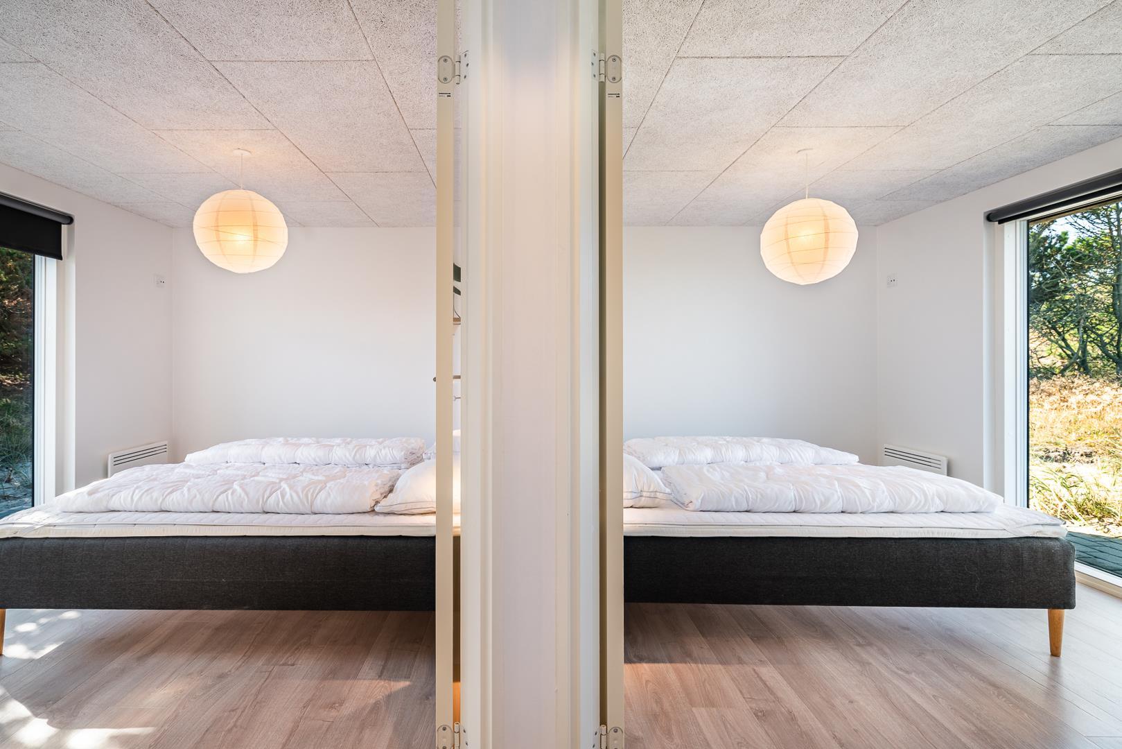 De tre soveværelser giver hver især mulighed for privatliv og god nattesøvn – uanset om I er en børnefamilie, tre generationer på tur eller venner på ferie sammen. De to badeværelser gør det nemt at være mange under samme tag, og gulvvarmen sikrer ekstra komfort – også i de kolde måneder. I det ene badeværelse finder I desuden en privat sauna – ideel til afslapning efter en lang dag ved stranden eller en aktiv tur i klitterne.