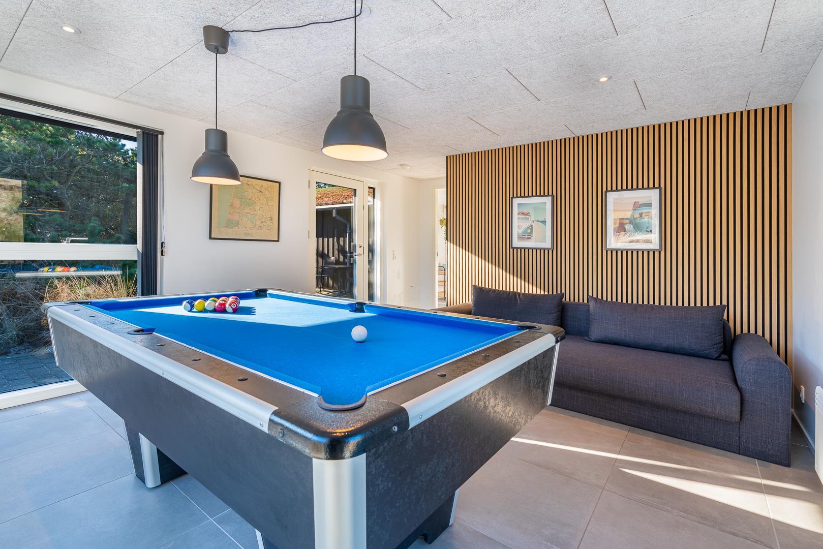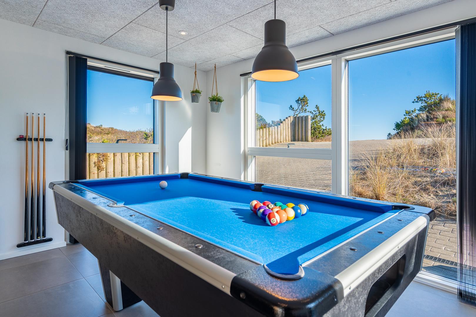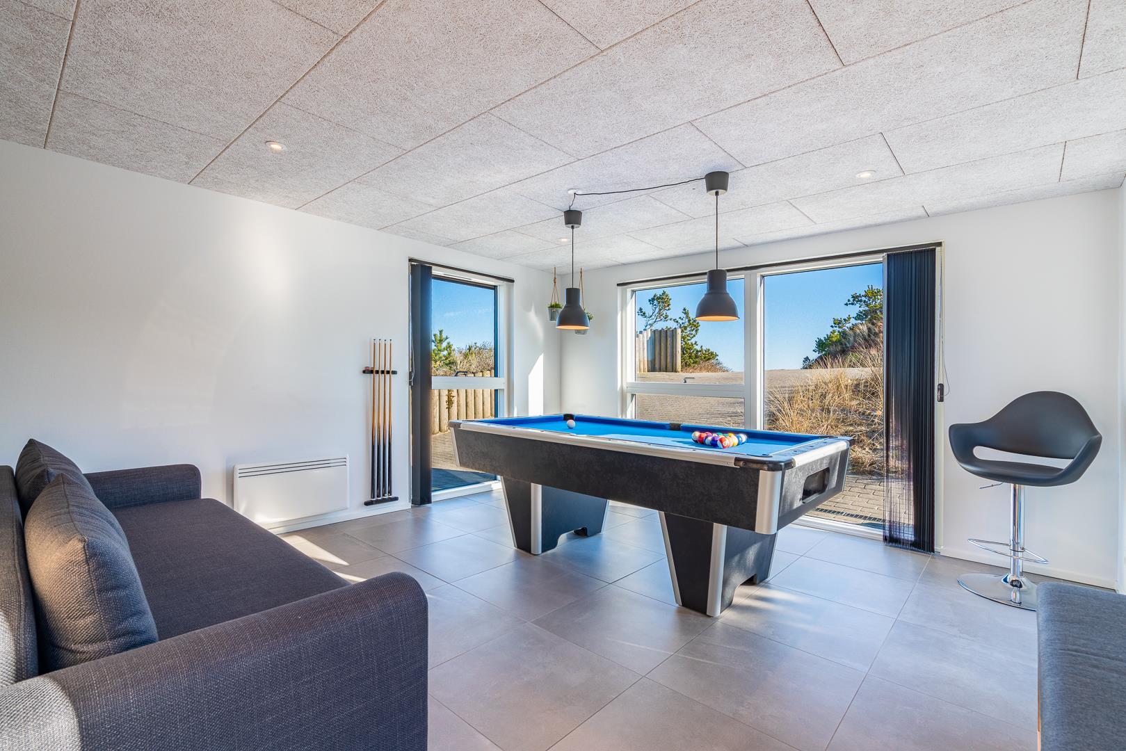 Når vinden rusker udenfor, bliver aktivitetsrummet sommerhusets naturlige samlingspunkt. Med billardbord og spillekonsol er der lagt op til sjove timer, hvor både store og små kan være med. Her opstår smil, samvær og de øjeblikke, man husker længe efter ferien.