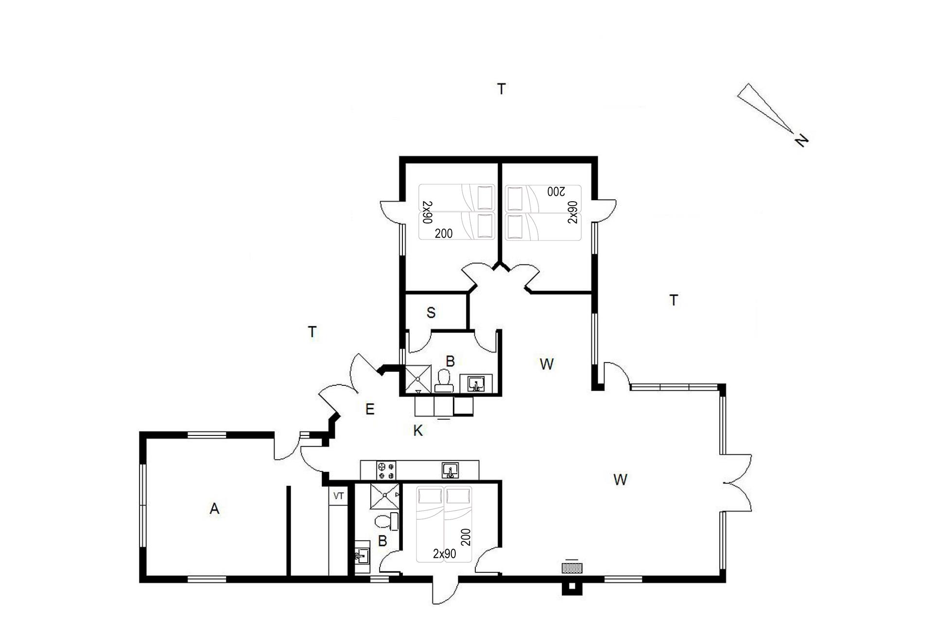 Sengestørrelser: 3 dobbeltsenge med 2 madrasser 90 x 200 cm.