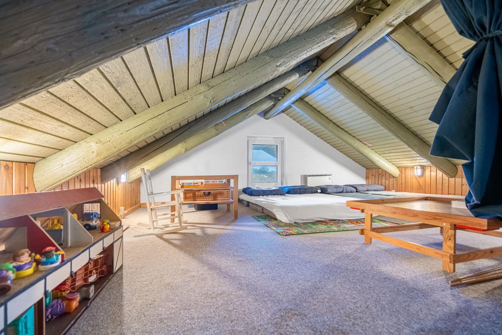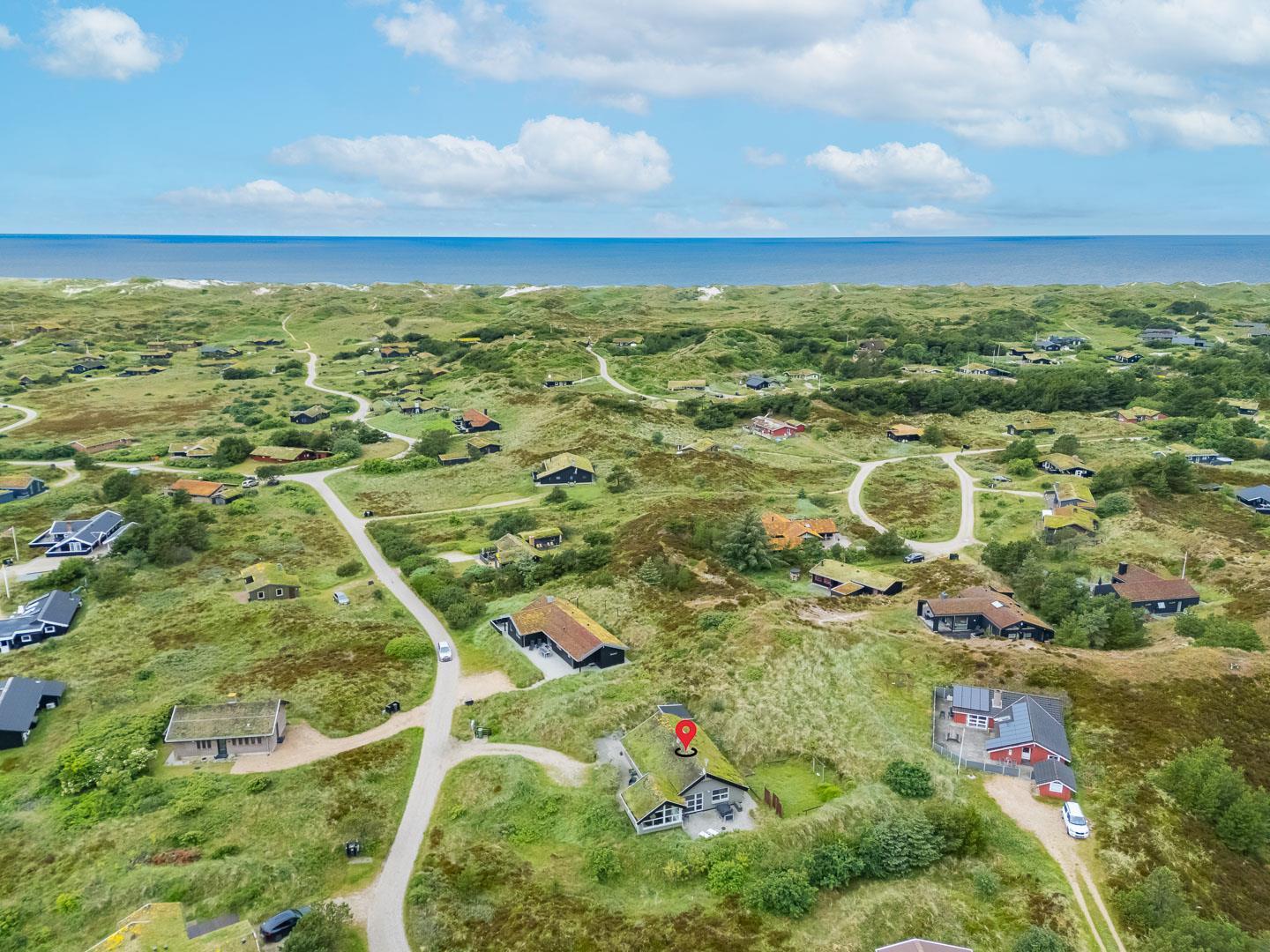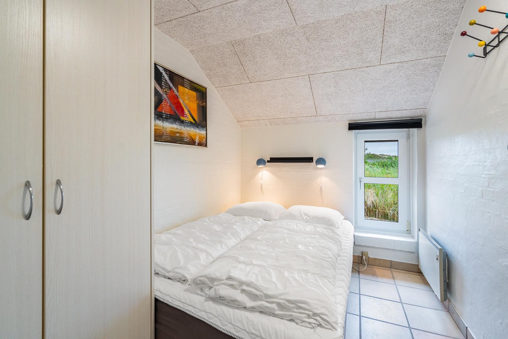 I Henne Strand ved Vestkysten ligger dette charmerende sommerhus på en stor naturgrund. Mens du tilbereder maden, kan ungerne sidde og tegne ved barstolene i det fine køkken. Køkkenet åbner op til en hyggelig tv-stue og en lys stue med store vinduer, der giver en fantastisk udsigt til den omkringliggende natur. Badeværelset er udstyret med gulvvarme. Med tre dejlige soveværelser, herunder to værelser med dobbeltsenge og et værelse med en køjeseng er her plads til 6 personer. Herudover finder du en dejlig stor hems fyldt med legetøj og spil, perfekt med ekstra plads hvis du booker dette skønne sommerhus i Henne Strand til din næste familieferie.