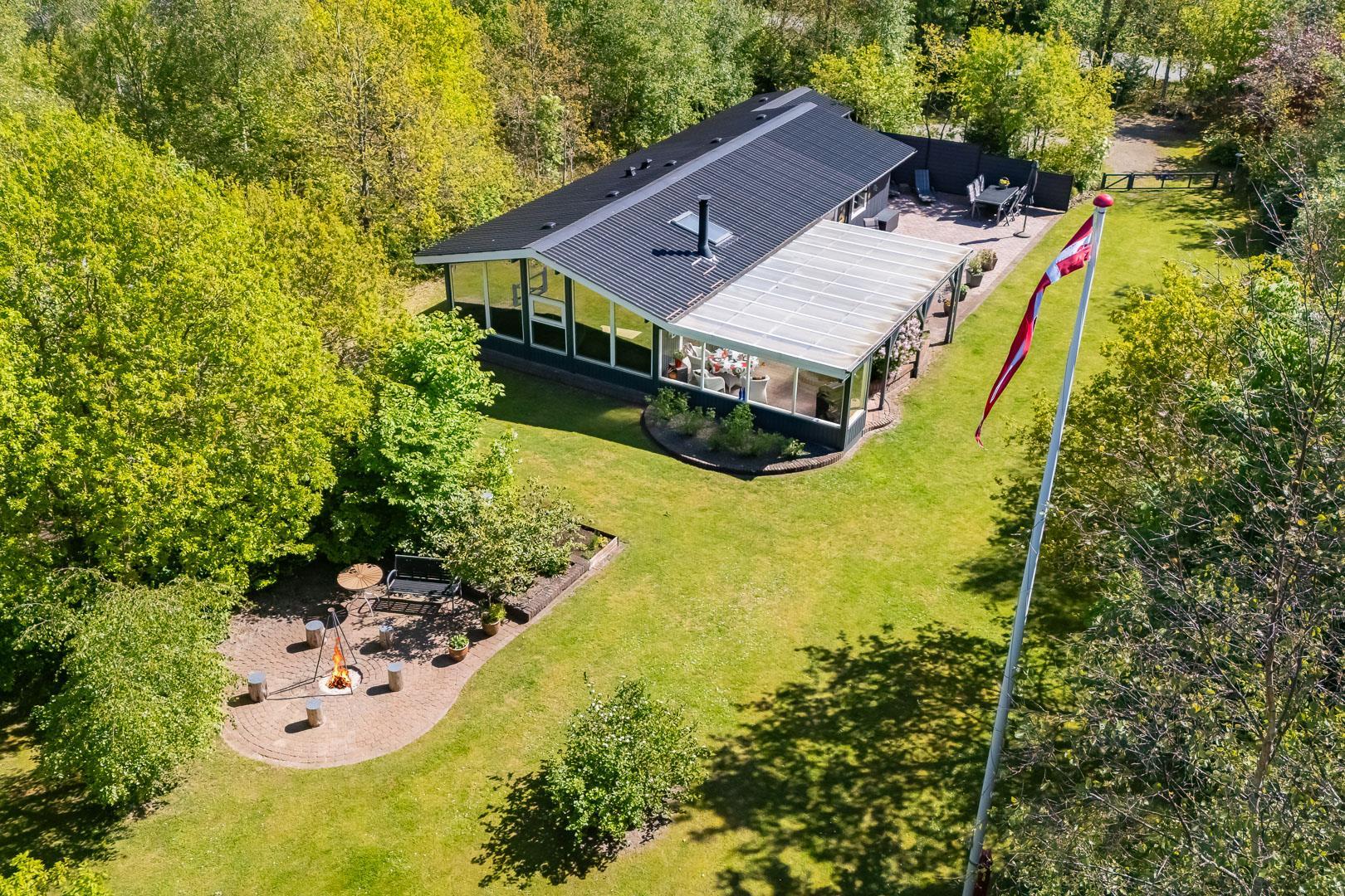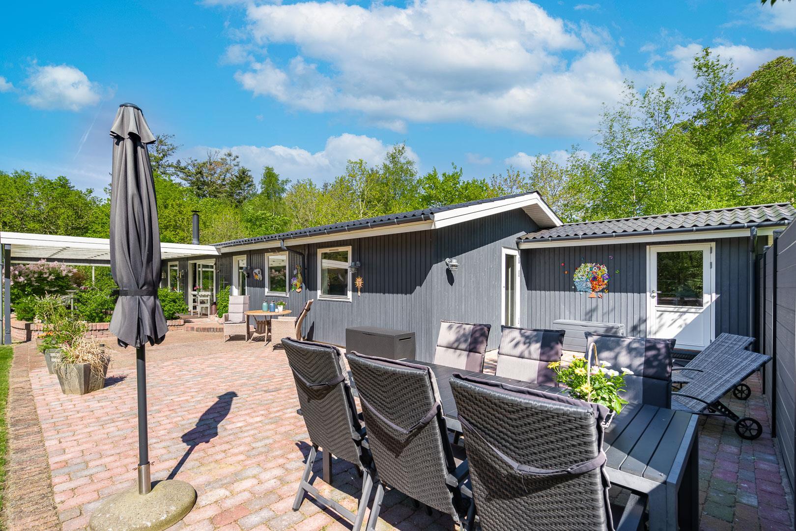 Dette skønne sommerhus er perfekt placeret på en eftertragtet grund, omgivet af træer og diskret placeret væk fra vejen, hvilket giver dig mulighed for at nyde din ferie i fuldstændig fred og ro.