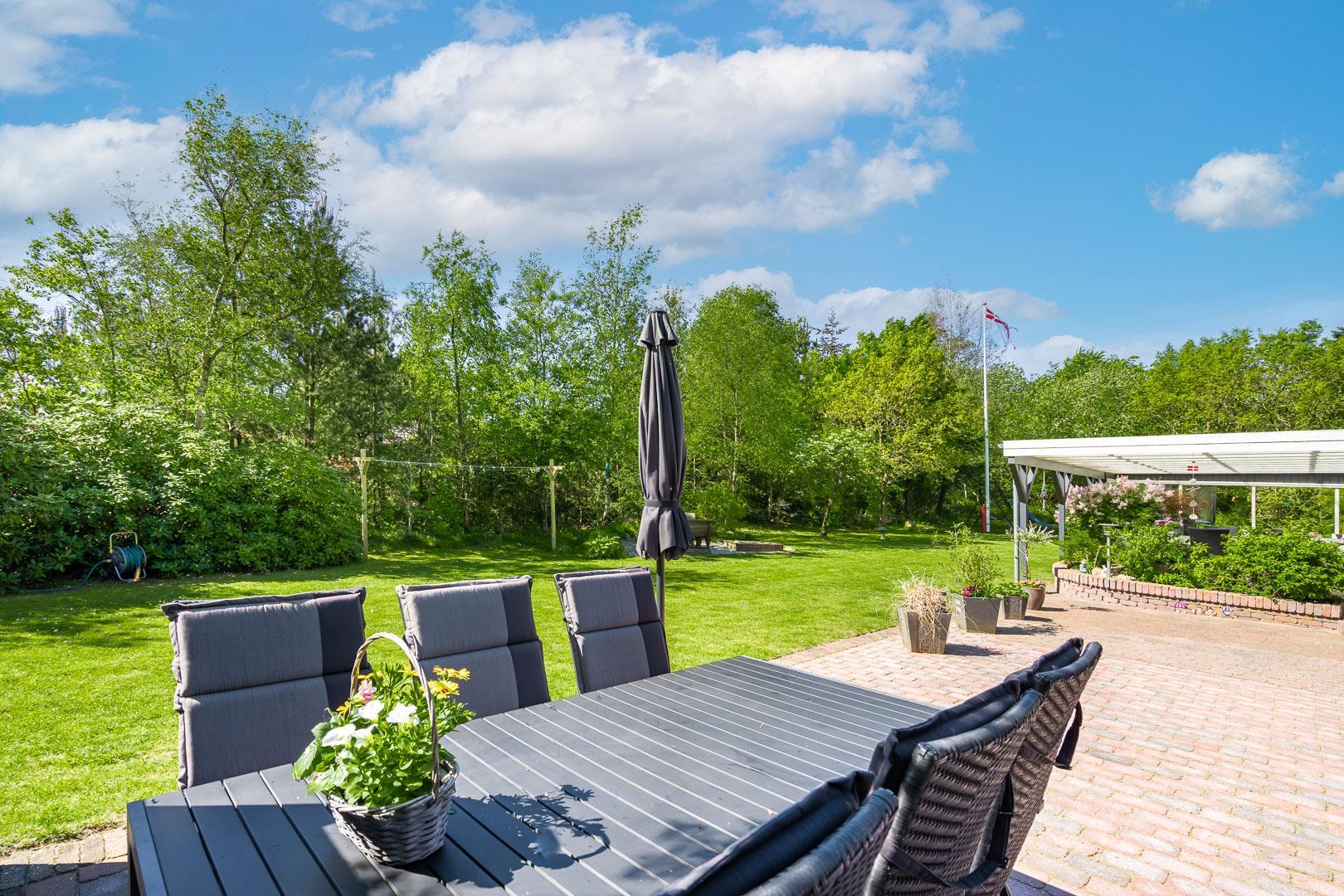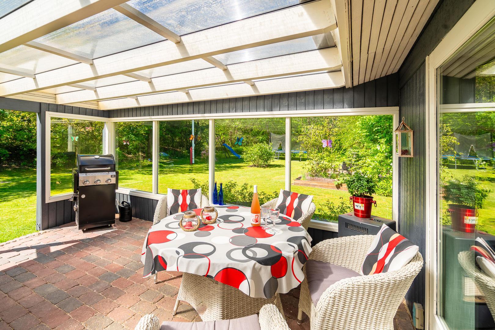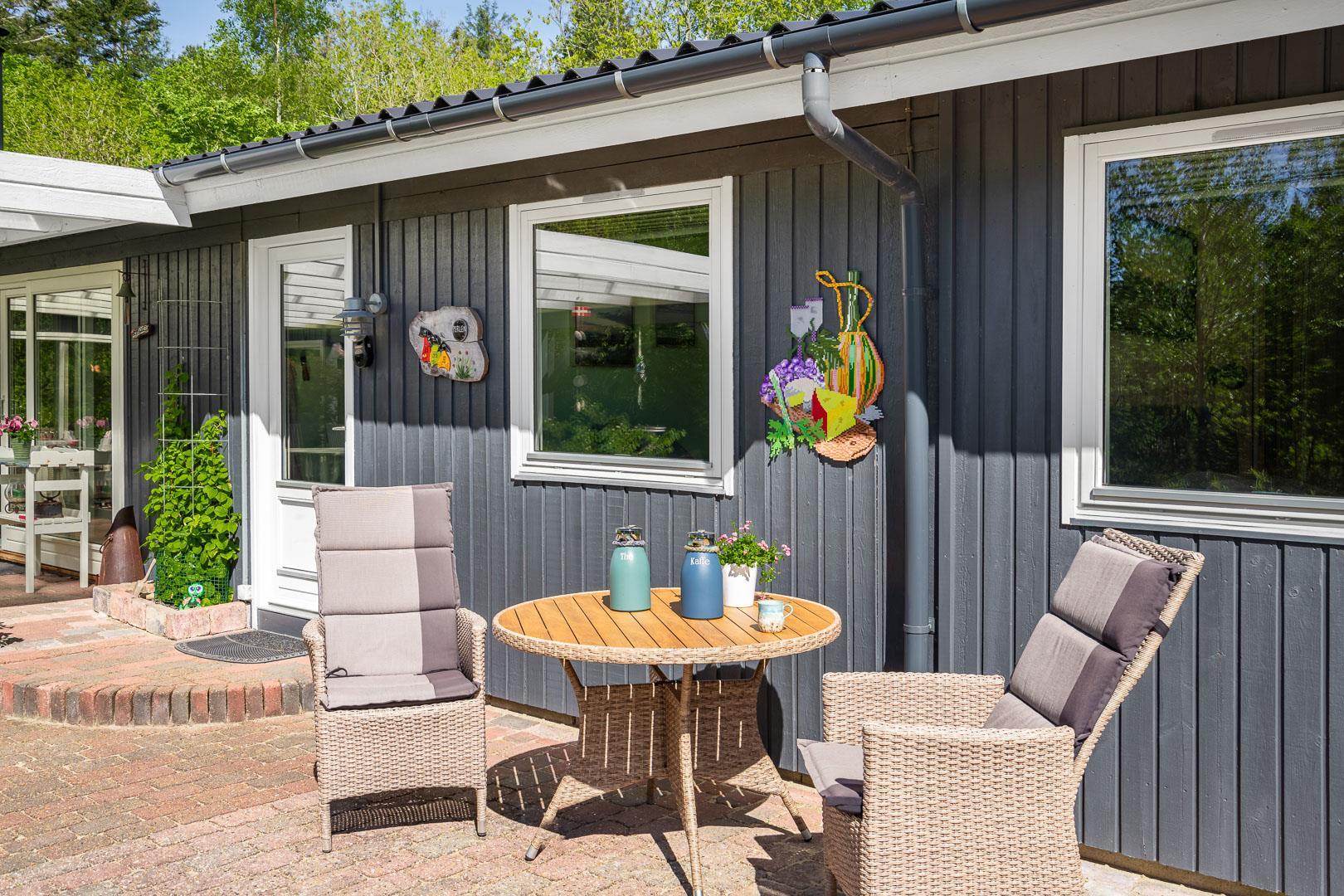 Udendørs er der noget for enhver smag, med en bred vifte af aktiviteter for både børn og voksne. Mens de voksne kan nyde livet på terrassen, kan børnene boltre sig på gyngestativet, trampolinen eller i sandkassen. Et bål sted tilbyder mulighed for hyggelige udendørs ferieoplevelser, og den delvist indhegnede grund gør det ideelt for firbenede familiemedlemmer.
