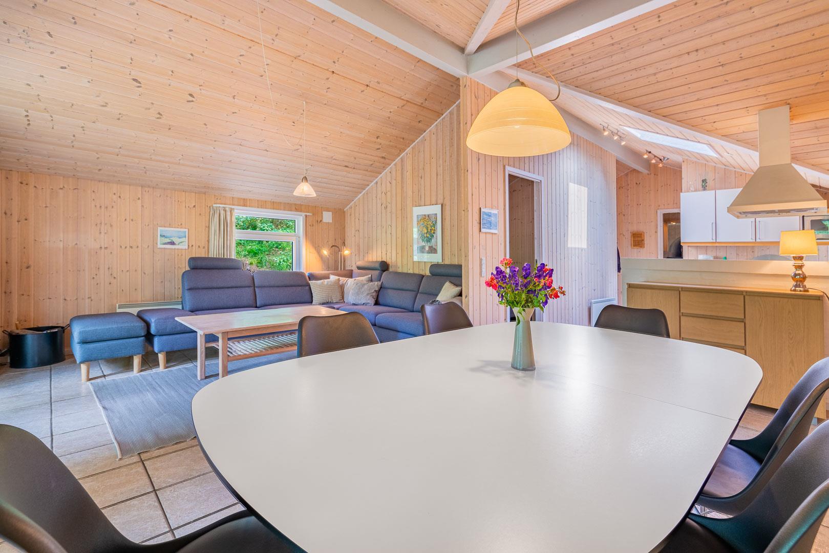 Pragtfuldt og meget velholdt kvalitetsferiehus beliggende på en dejlig ugeneret klitgrund for enden af blind stikvej tæt på vandet. Fra den lyse stue der er indrettet med gode og pæne møbler, er der udgang til stor terrasse med gode læforhold. Dejligt veludstyret køkken som er kombineret med stuen. Flot badeværelse med spa og sauna. Der er klinkegulve i.