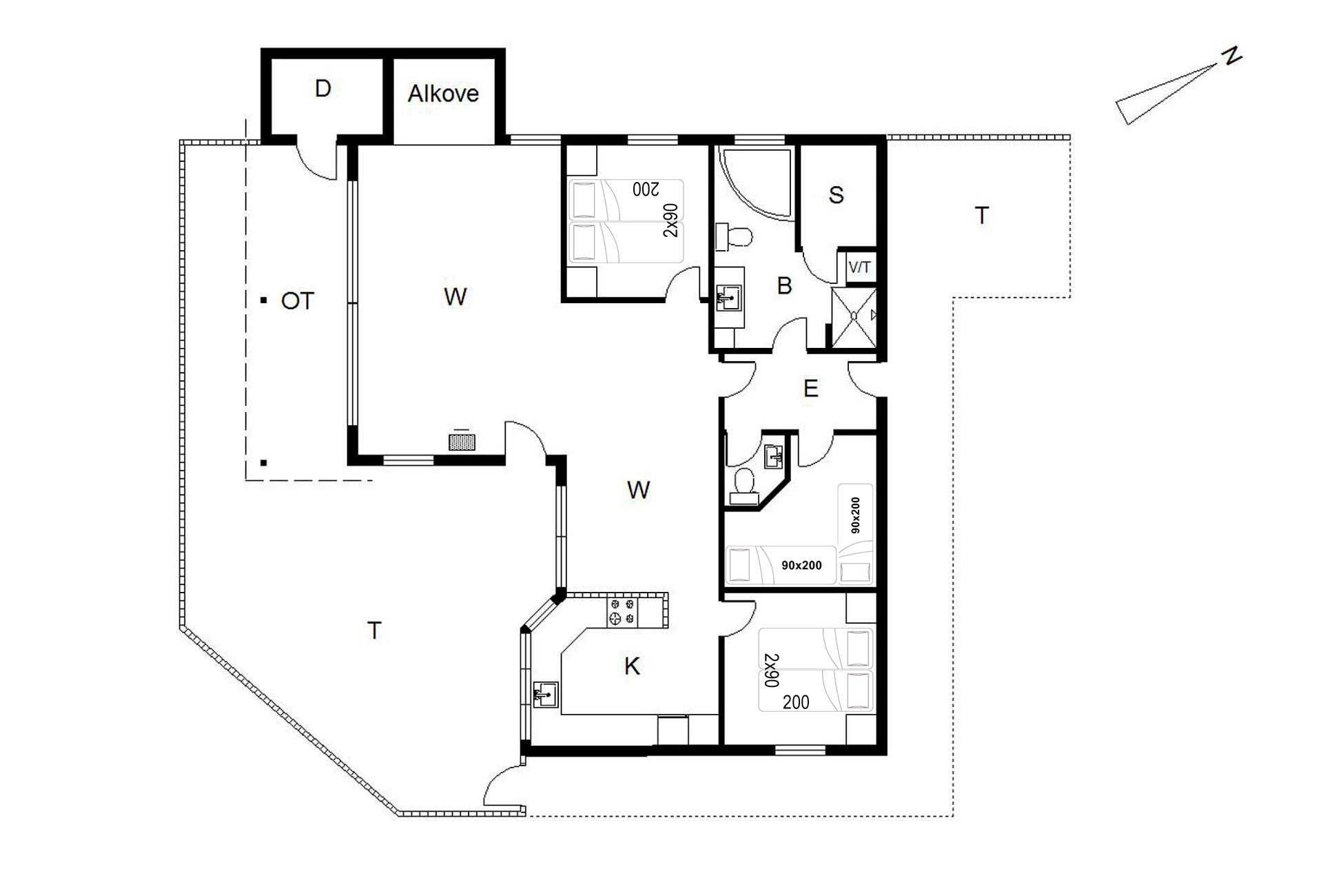 Sengestørrelser: 2 dobbeltsenge med 2 madrasser 90 x 200 cm + 2 enkeltsenge 90 x 200 cm.