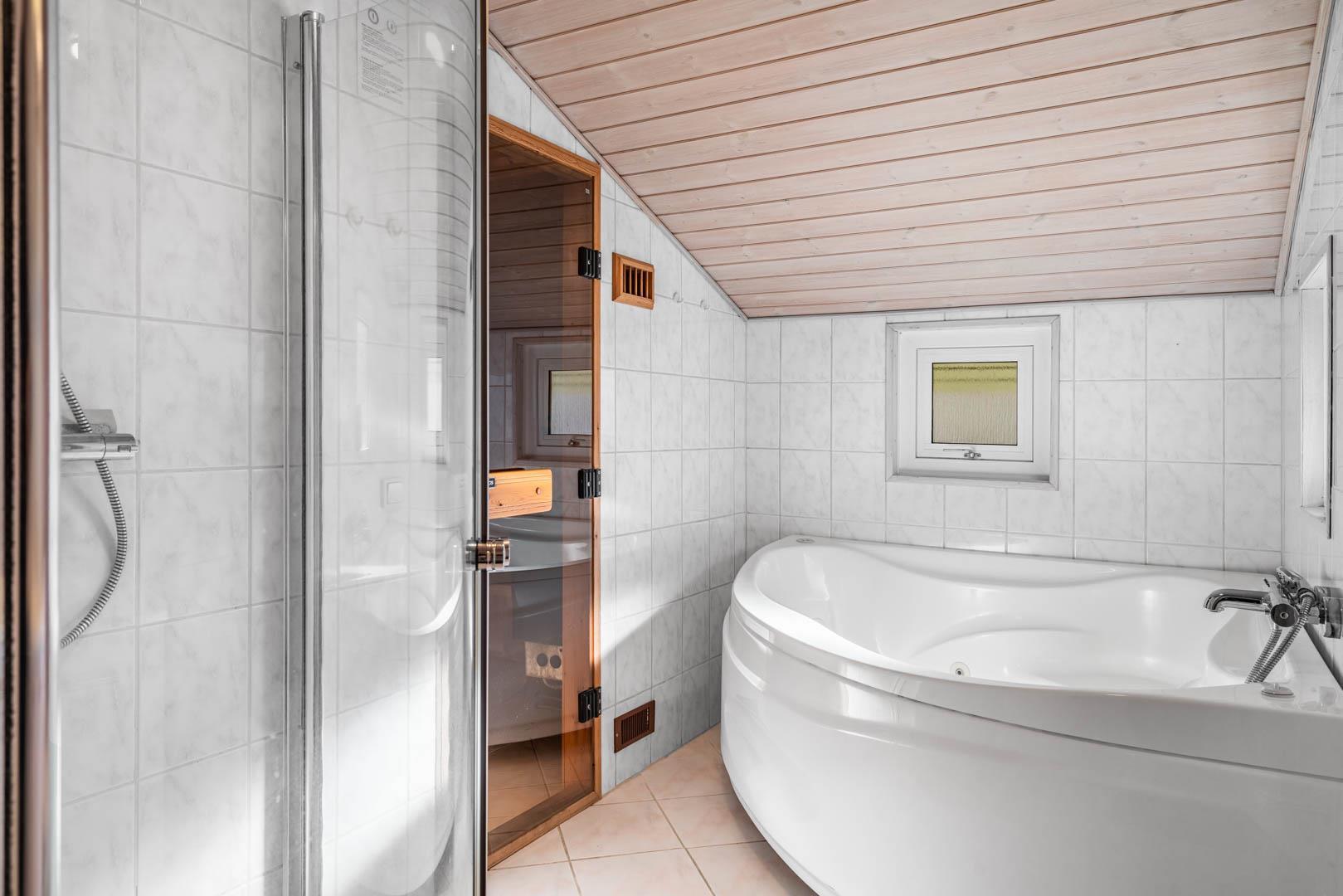 Hyggeligt og velholdt feriehus tæt på Blåbjerg Plantage og Henne Golfbane med sauna og stor hems.