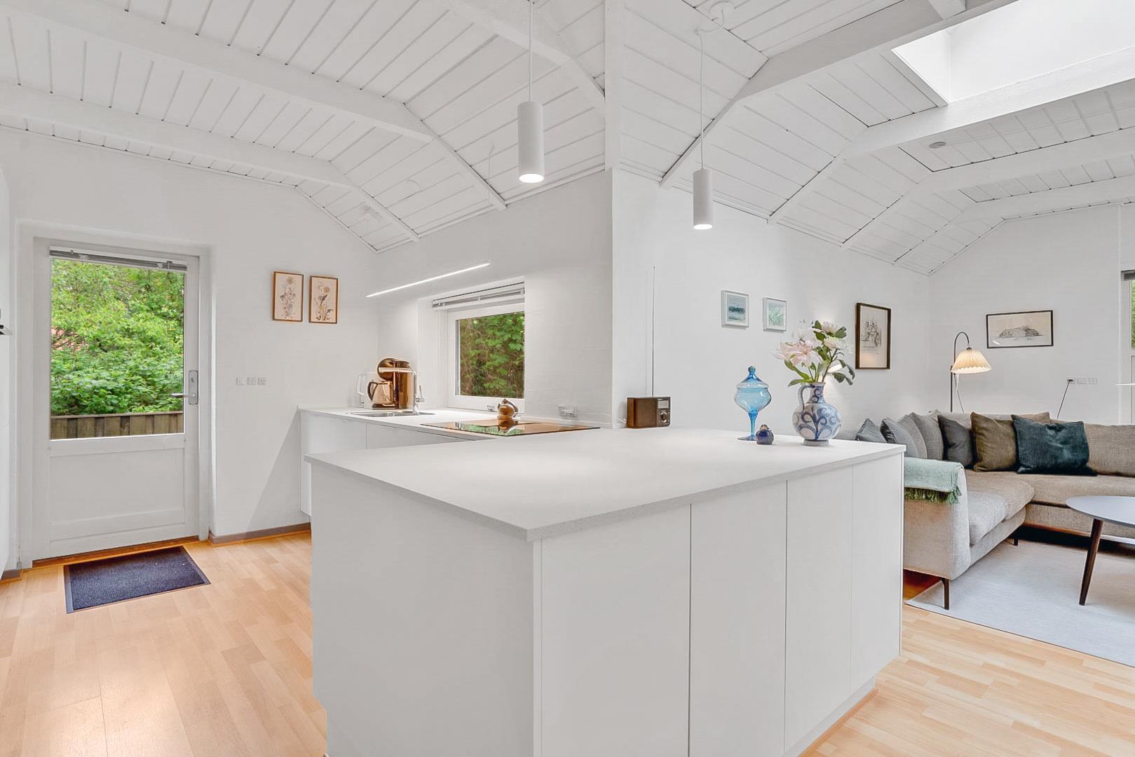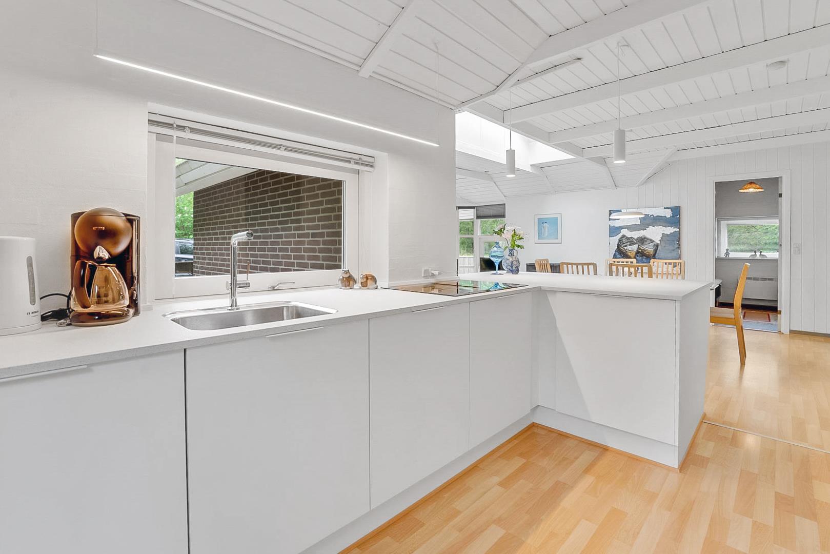 Inde i huset mødes du af et rummeligt og lyst køkken/alrum, udstyret med en hyggelig brændeovn, der skaber en varm og indbydende atmosfære. Køkkenet er rigtig fint og fra 2023 og byder på moderne hårde hvidevarer, der gør det til en fornøjelse at tilberede måltider. De store vinduer sørger for, at rummet er badet i naturligt lys og skaber en venlig og åben atmosfære.