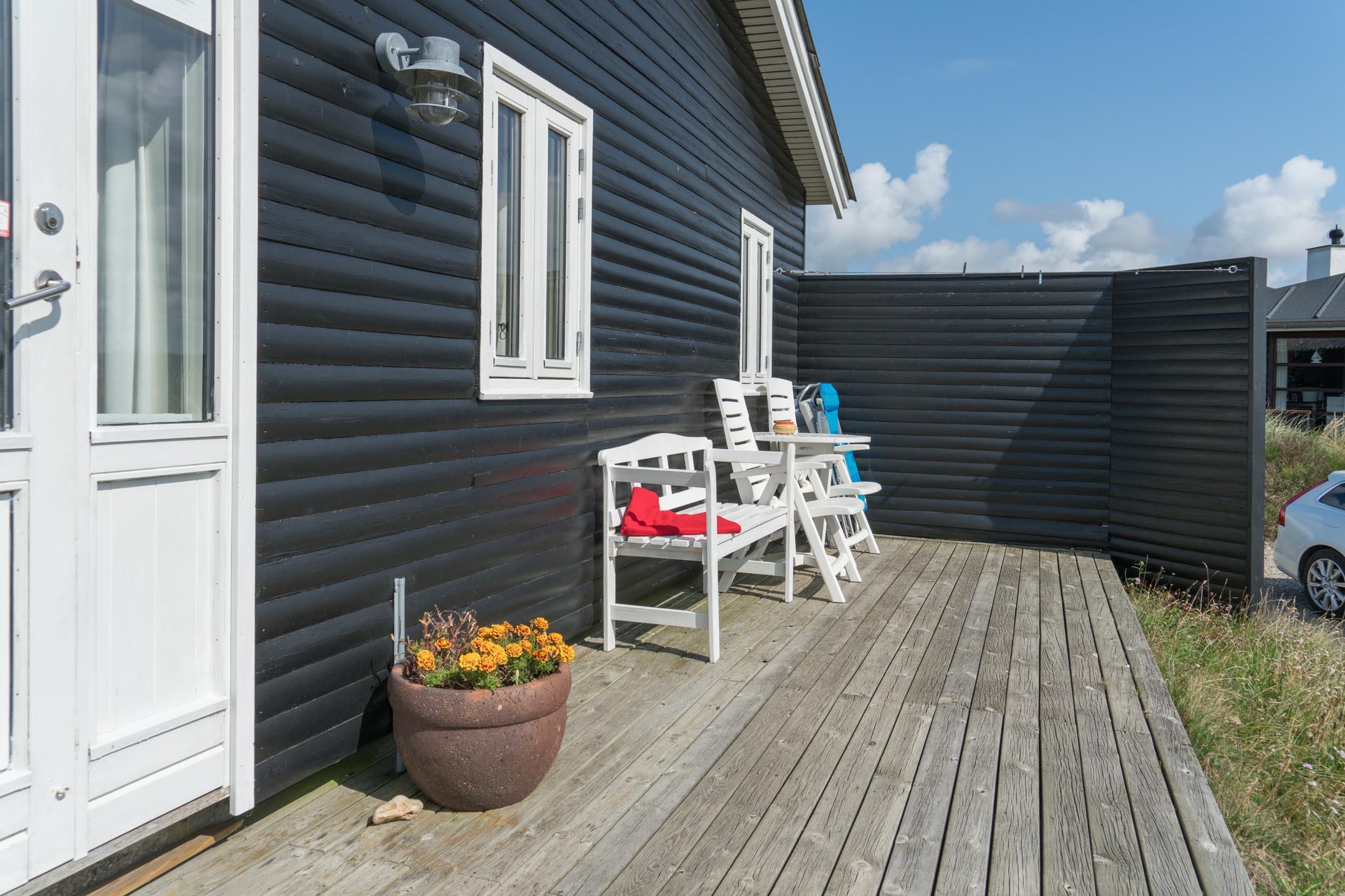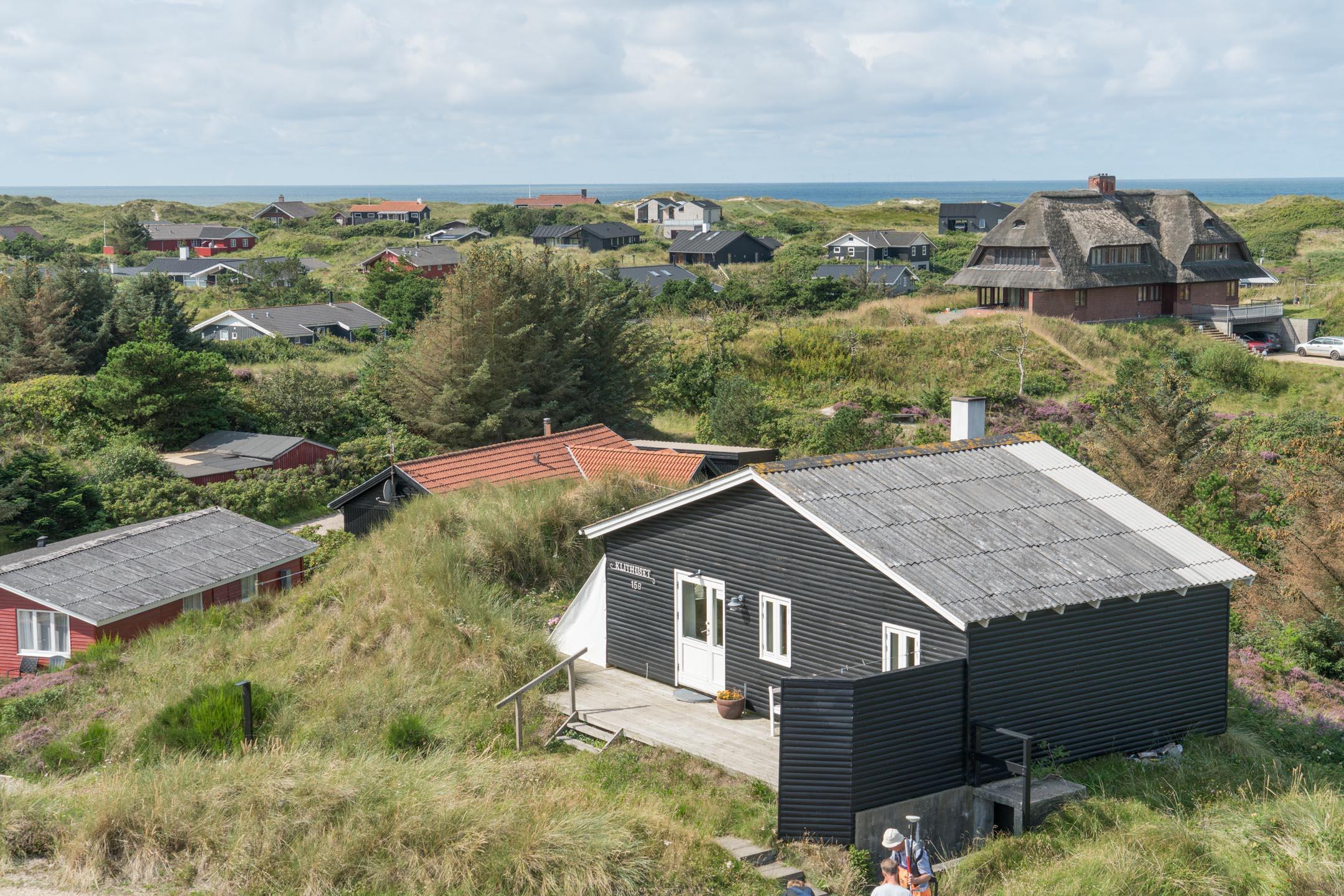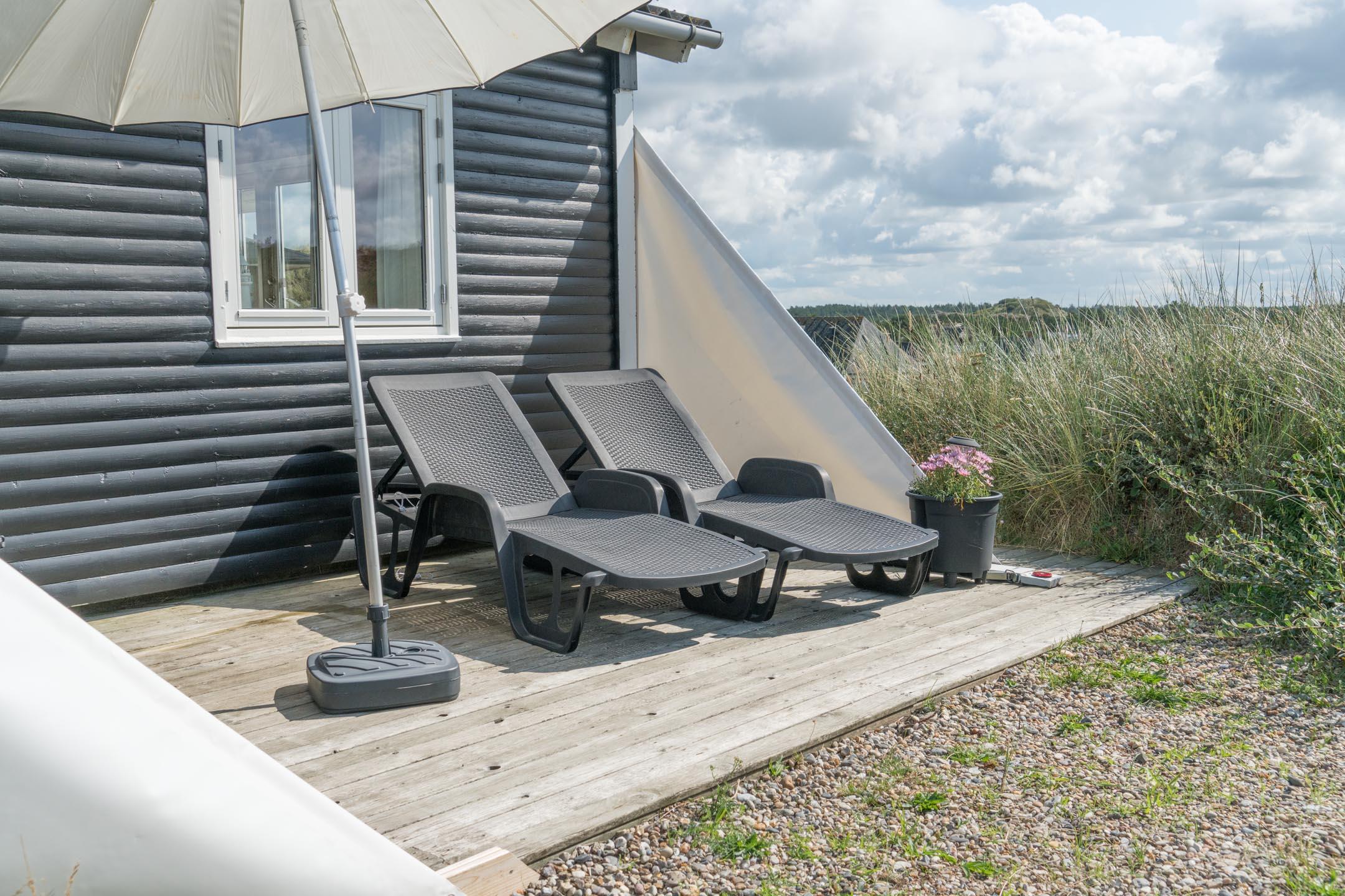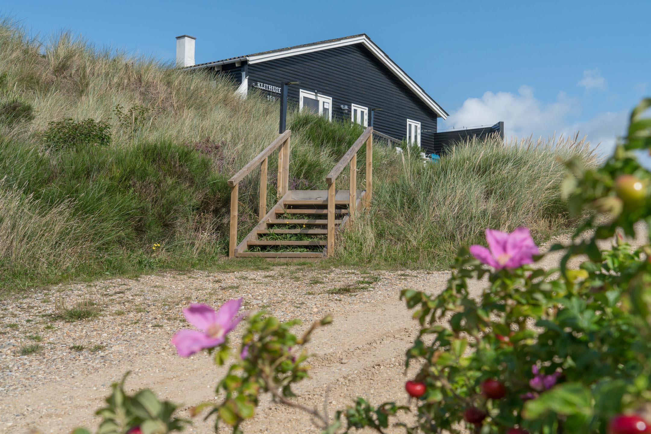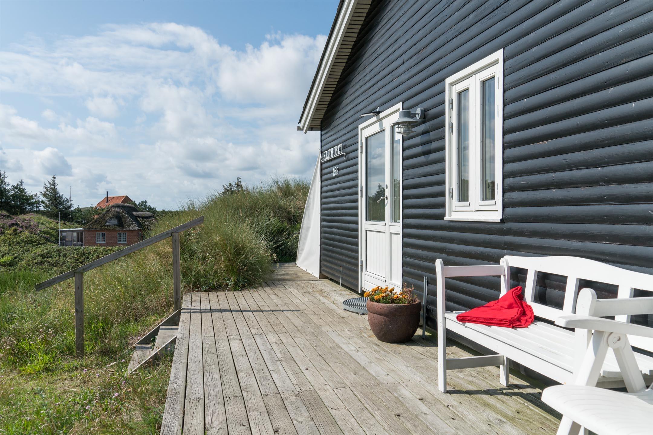 Hyggeligt sommerhus på en klitgrund i Henne Strand med havudsigt og terrasse, tæt på Vesterhavet og byen.