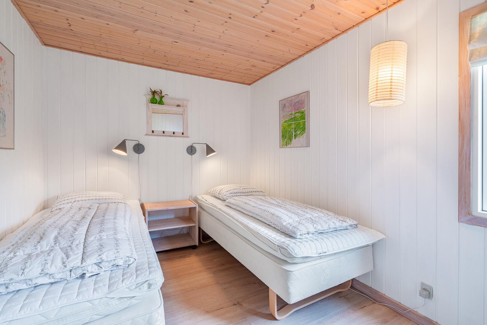 Der er to soveværelser: ét med dobbeltseng, og èt med to enkeltsenge – oplagt til børn eller medrejsende.