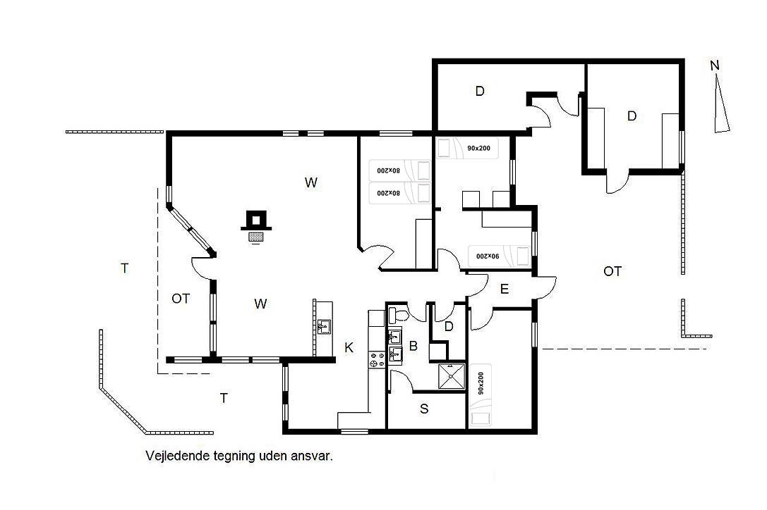 Sengestørrelse: 1 dobbeltseng med 2 madrasser 80 x 200 cm + 3 enkeltsenge 90 x 200 cm.
