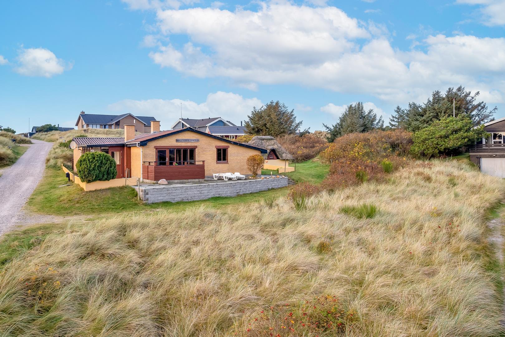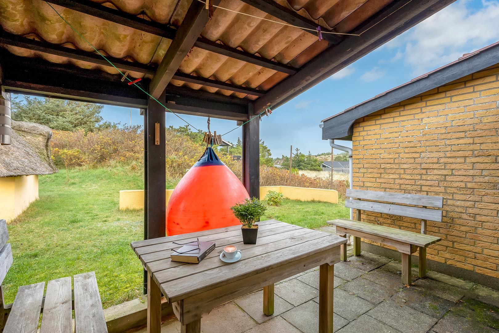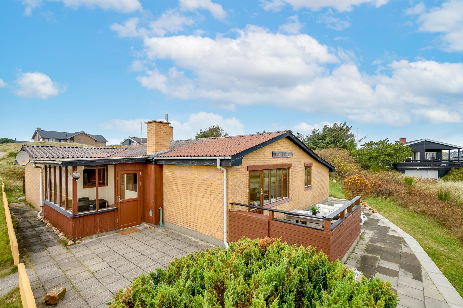 Omkring feriehuset er der flere gode terrasser. Der er gåafstand til Henne Strand by samt vestkystens bedste badestrand.