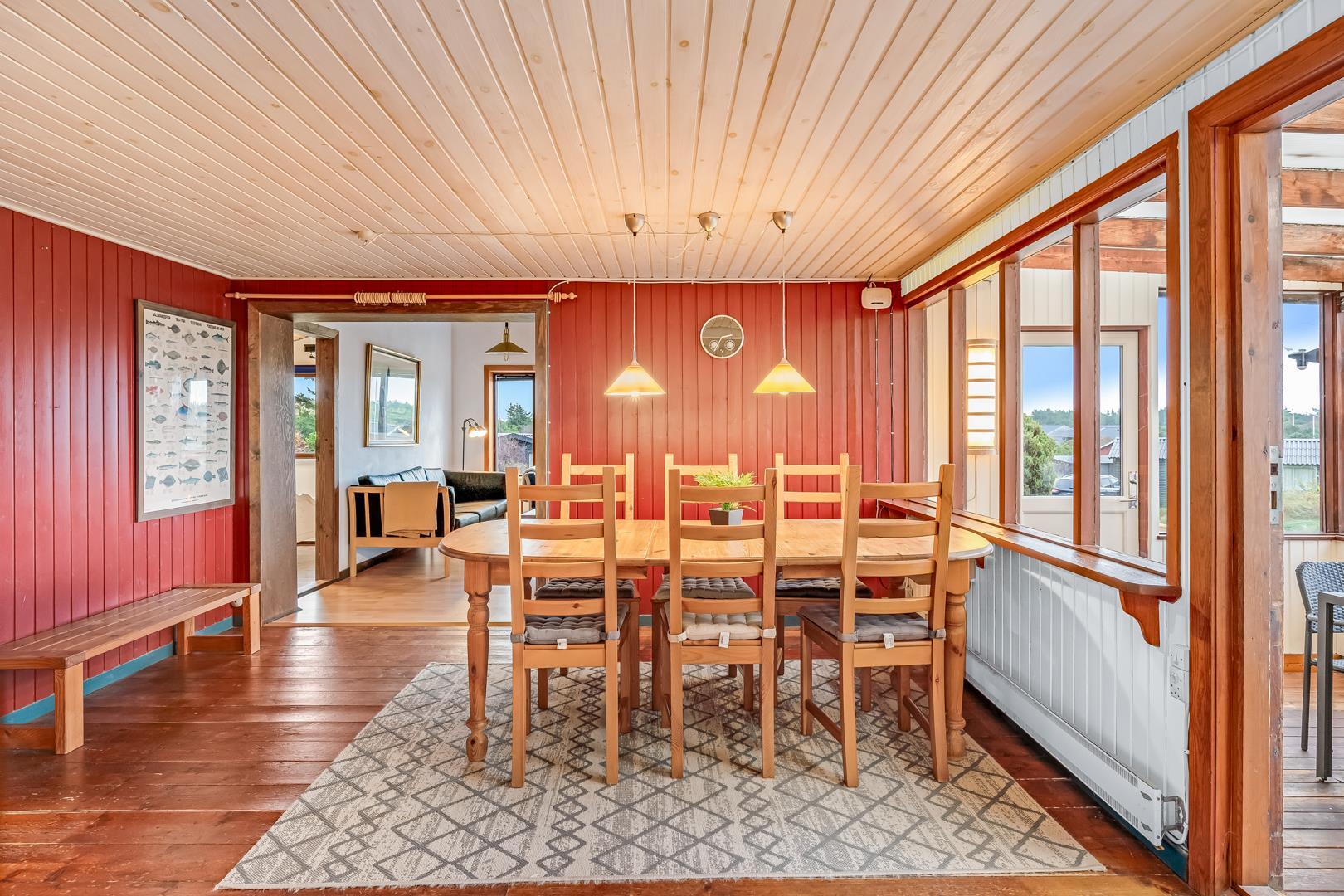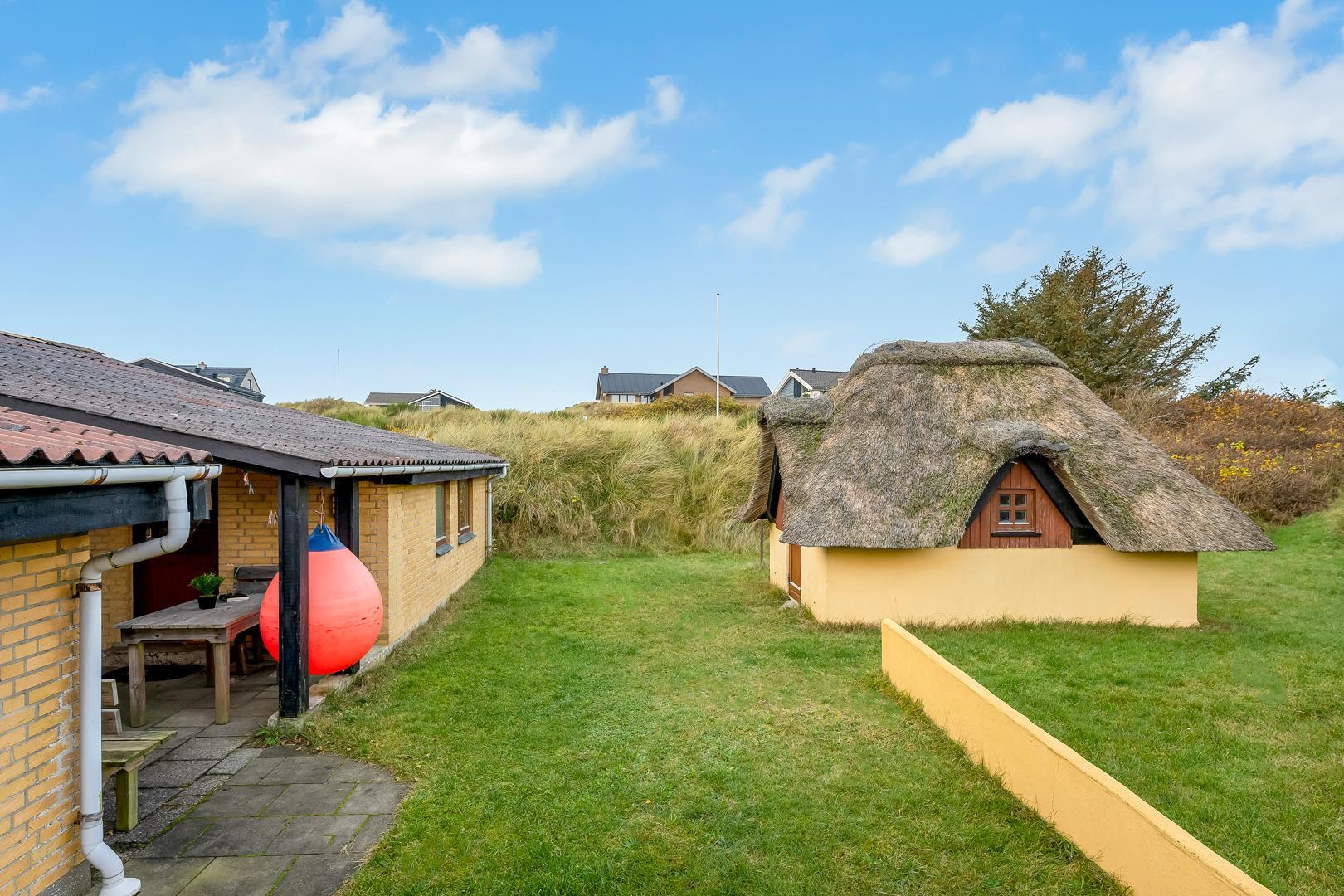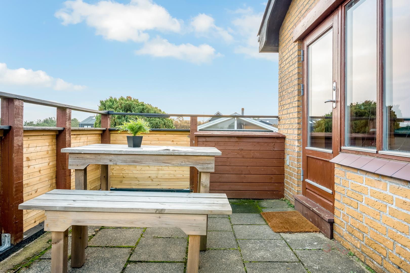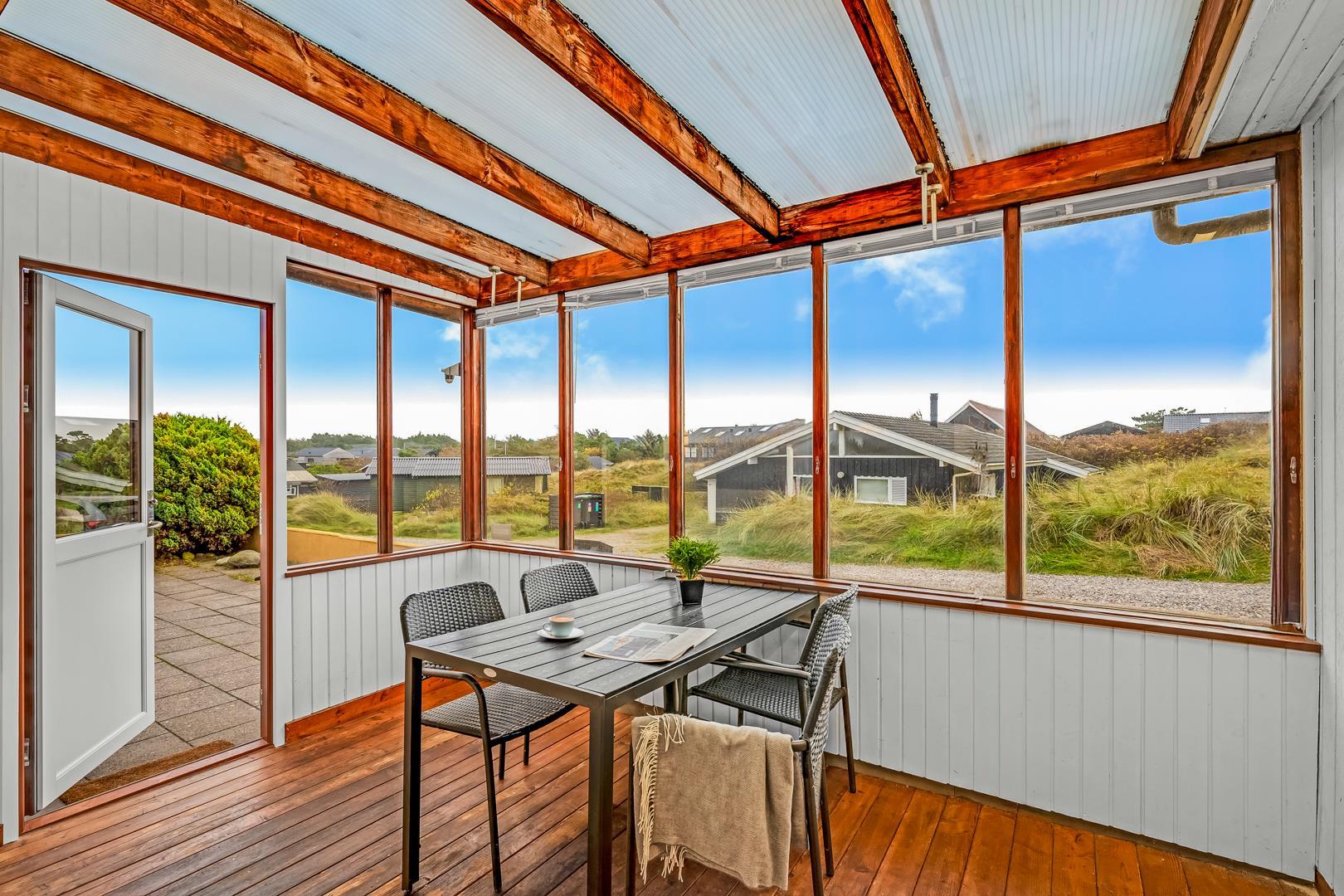 Omkring feriehuset er der flere gode terrasser. Der er gåafstand til Henne Strand by samt vestkystens bedste badestrand.