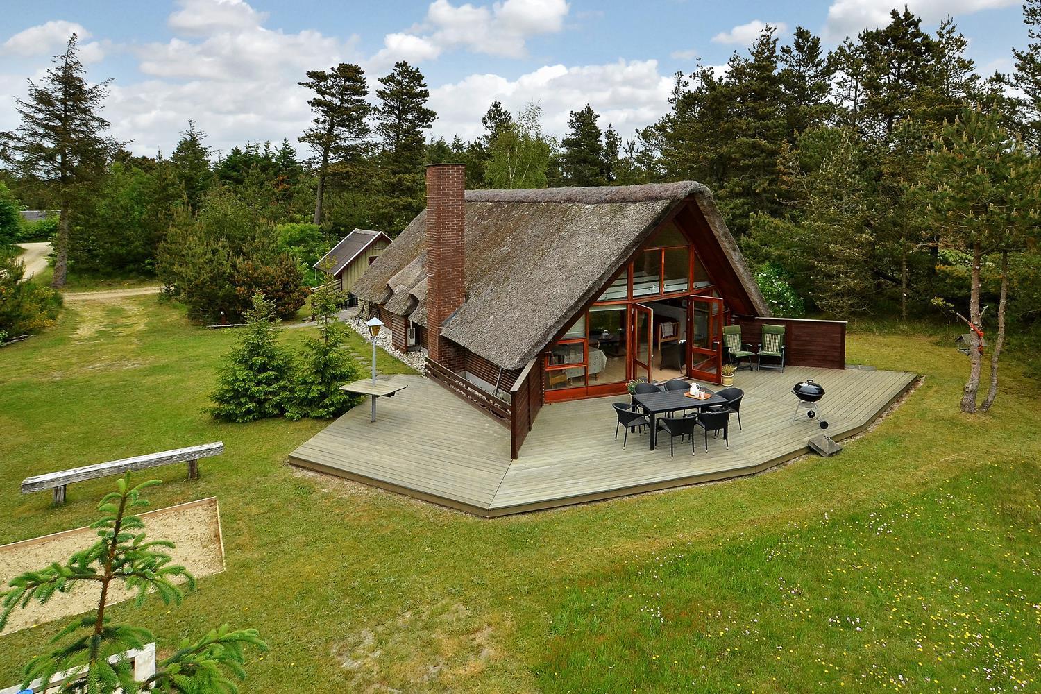Charmerende stråtækt feriehus i Henne Strand med skøn terrasse og børnevenlig have.