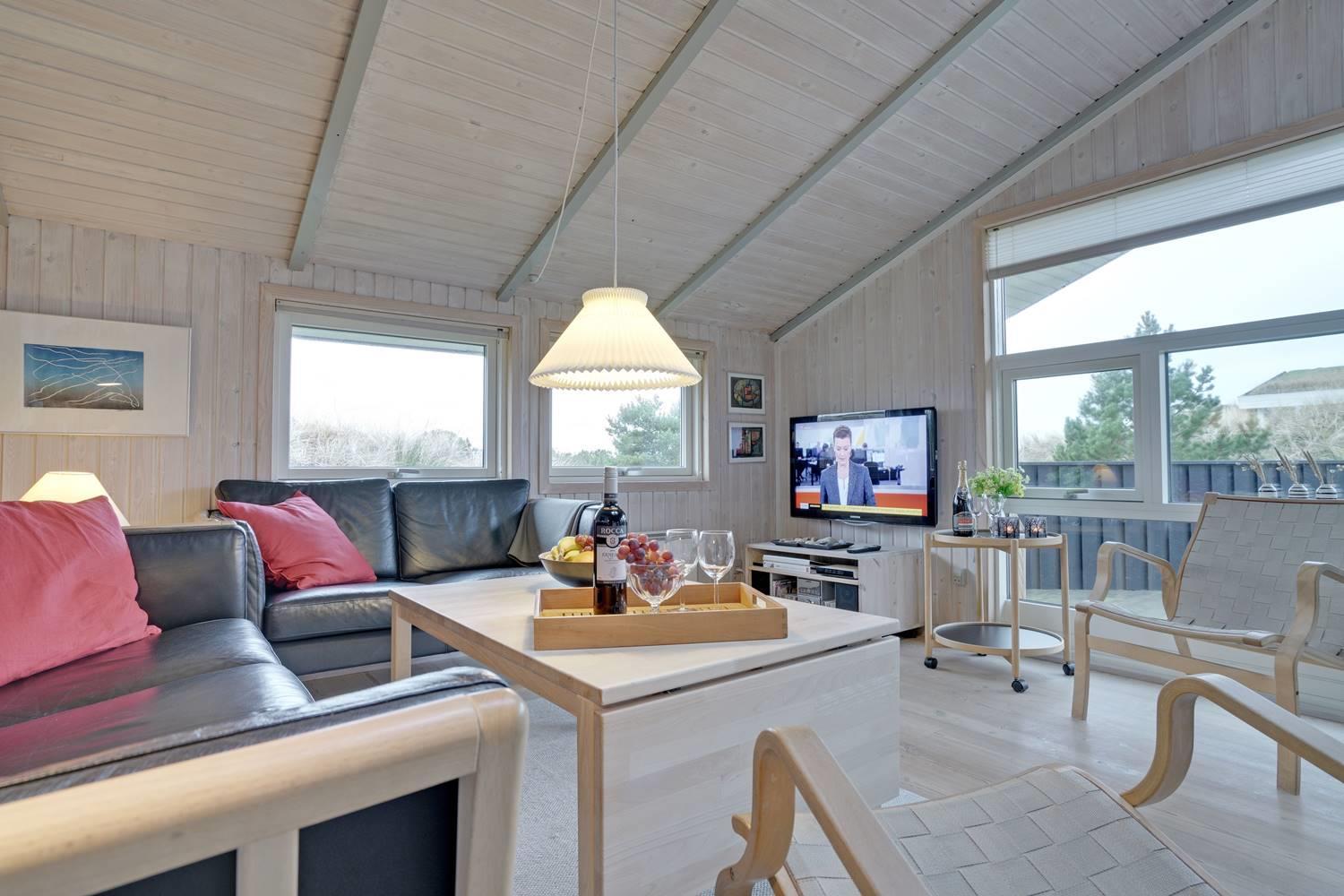 Hyggeligt feriehus med sauna og brændeovn, beliggende på ugeneret klitgrund nær fredet lyngområde i Henne Strand.